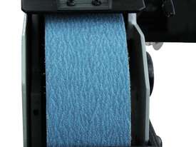 User-Friendly Belt Linisher. Quick-change belt system minimizes downtime, while the tilting head allows for ergonomic adjustments, reducing fatigue during extended use.