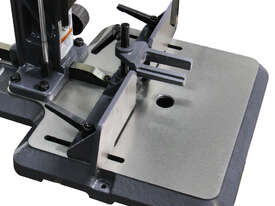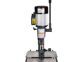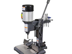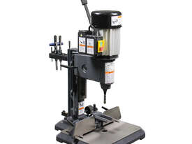 Compact Benchtop Design Mortiser. Takes up minimal space on your workbench while offering features usually found on larger floor models. Great for sheds, garages, or space-limited workshops.