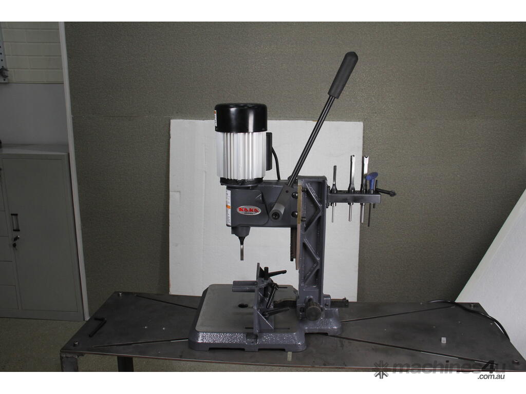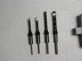 Ready to Use Out of the Box. Comes with four popular-size chisels (1/4", 5/16", 3/8", 1/2") already sharpened and a convenient tool storage rack on the column. Easy-access chuck makes chisel changes fast.
