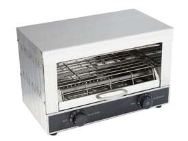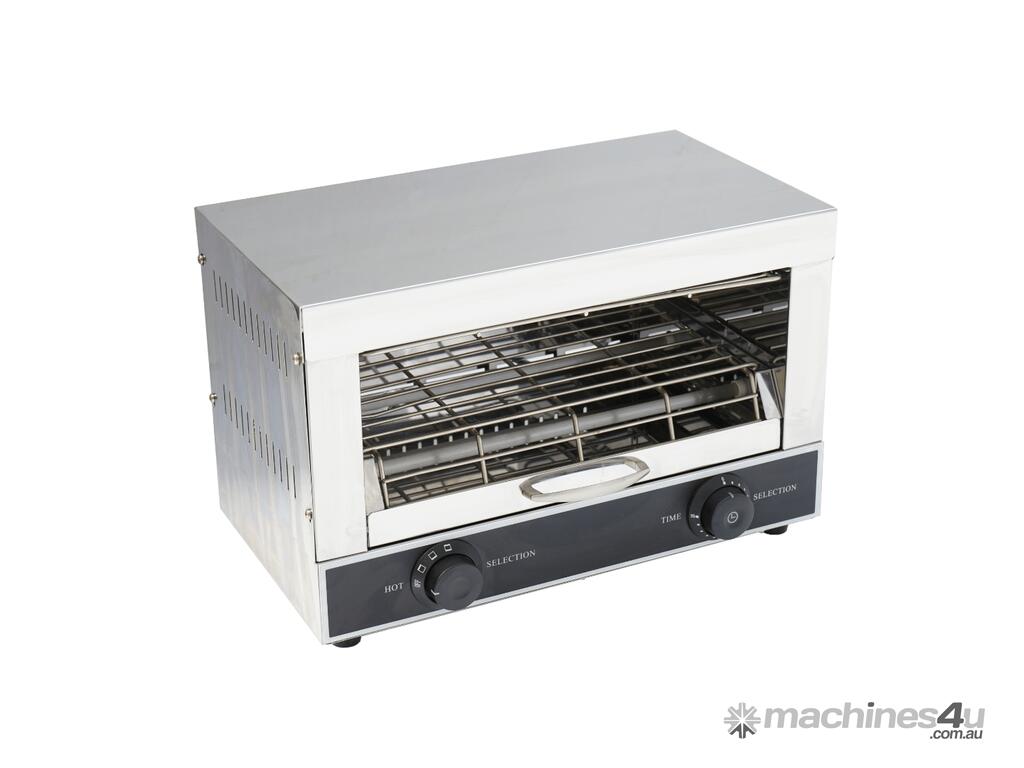 Benchstar Single infrared quartz element salamander griller toaster and timer - QT-1 Key Features Low electrical cost Toast top & bottom at once Heats up in seconds, timer control Very low Electrical Cost Super Fast infrared rays provide fast even cooking 4 Heating elements; AC220-240V/50Hz 90mm from tray to top of opening 355mm wide opening 1 Year Parts and Labour Warranty Depth: 245 mm | Width: 440 mm | Height: 285 mm | Power: 1.7kW, 10A | Net Weight: 8 | Price: $369 | Manufacturer: Benchstar | Warranty: 1 Year Return to Base
