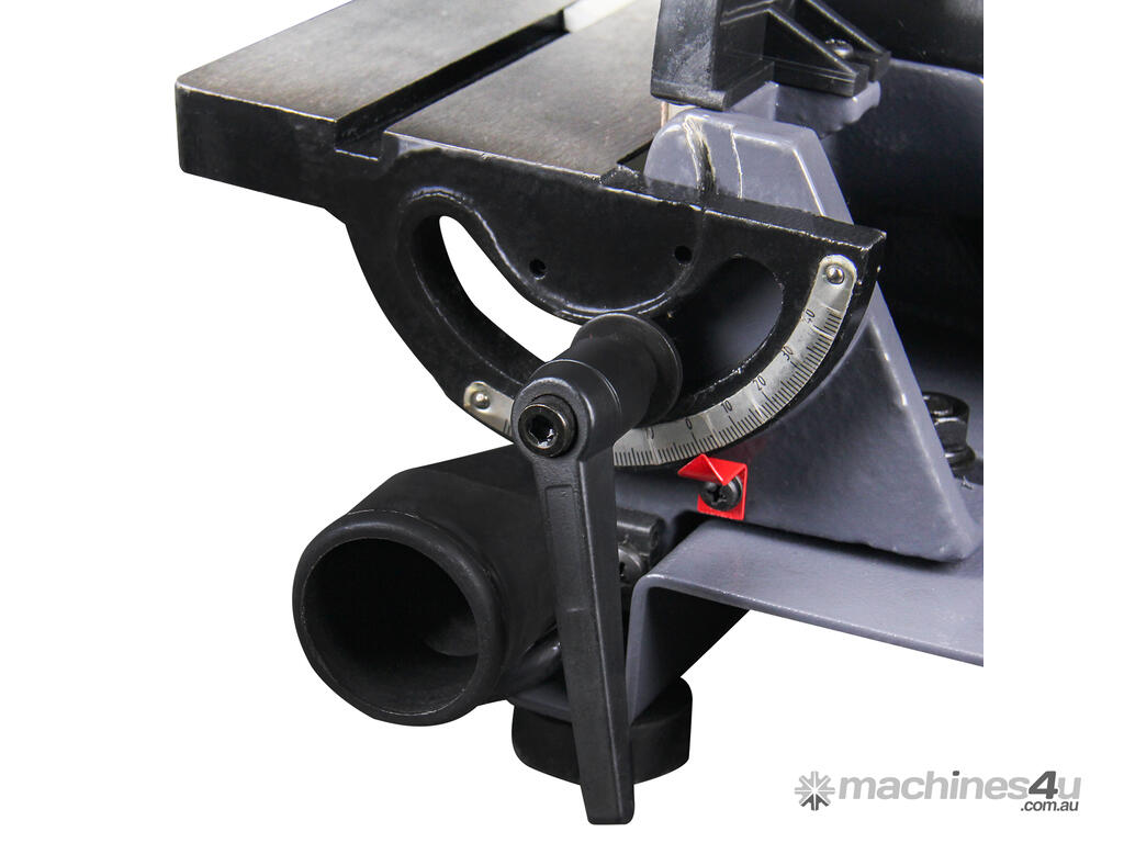 Precise Adjustable Table. Tilting tables (0–45°) and mitre guide enable accurate bevels, mitres, and compound angles — great for trim, joinery, or craft work.