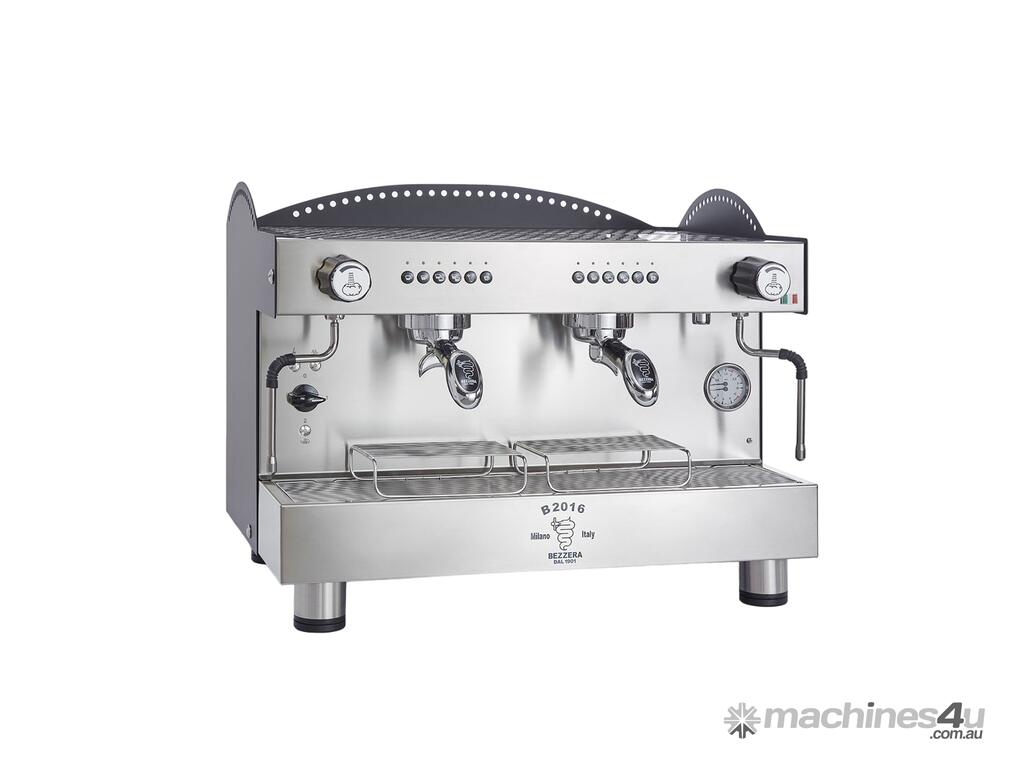 Bezzera 3L Black 2-Group Professional Espresso Machine BZB2016B2DE Brew that perfect blend your customers crave with our Espresso Machine! It combines the practicality of a volumetric compact espresso machine with the production capacity of a 2 group espresso coffee machine. The Bezzera B2016 espresso coffee machines range resume its main BEZZERA’s distinctive marks: reliability, robustness, versatility! This also works with a motor-pump – the groups have electronically regulated solenoid valves. You can obtain 4 different doses of coffee with constant quantity and temperature, settable doses and rebrewing. Key Features: Stainless steel body, back cover available in stainless steel, red and black In-built water pump Two fully flexible stainless steam and water arms Thermostatically controlled groups: the 50W electrical heater keeps the group temperature stable, even under heavy duty conditions Automatically controlled copper boiler enables the optimum steam and hot water productivity Heat Exchangers: operated with a hydraulic circuit separated from the boiler, coffee is always prepared with fresh water Safety: double safety system, guaranteed by the boiler high-temperature cut-off thermostat and the hydraulic overpressure valve Versatility: the large working area and the special grids allow you to use up to 13 cm high cups Additional Information: Boiler Capacity: 11L Colour: Black Load connection: G 3/8" Drain connection: G 3/4" Warranty: 1 year parts only Depth: 550 mm | Width: 750 mm | Height: 515 mm | Power: 240~415V; 3000W; 15A | Net Weight: 54 | Price: $7999 | Manufacturer: Bezzera | Warranty: 1 Year Parts Only