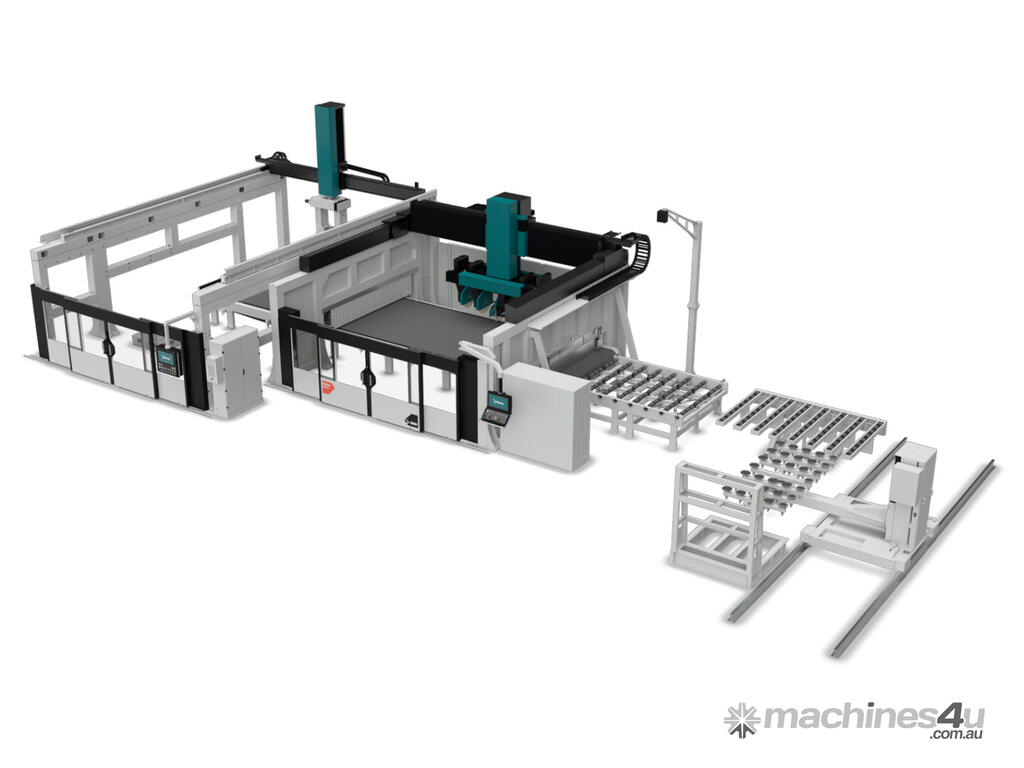 The advanced multi-spindle CNC cutting centre with 9 or 13 controlled axes ensures high speed and precision multiple cuts for large-scale production.