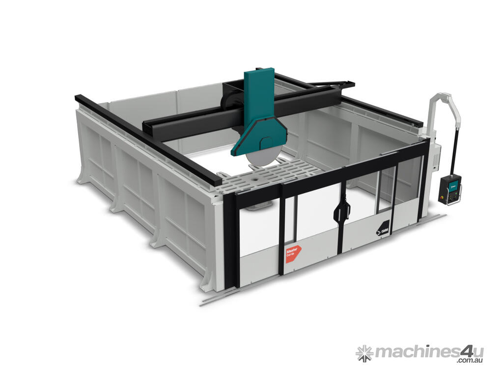 The Master Cut Up B W is the automatic sawing machine ideal for processing blocks of stone, marble, and granite. It is equipped with a cast iron structure and steel guards, a fixed head, an optical fixture detector, and a rotating table, making it ideal for complex cuts.