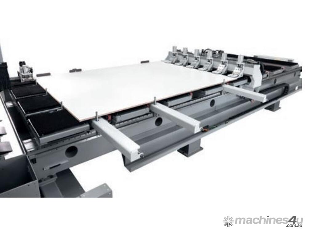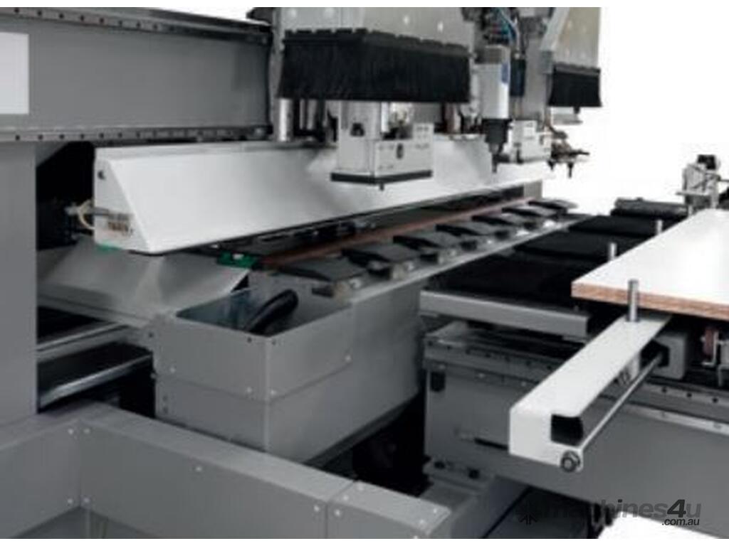 The Nextstep flexible cutting centre guarantees perfect squaring thanks to the simultaneous use of two routers and the combined action of the rear pushing device grippers, side gripper and vertical pressers.