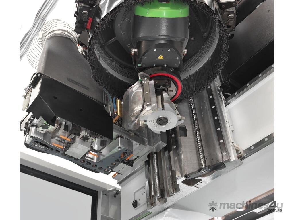 The 5-axis operating head, equipped with up to 16.5 kW HSD spindle and with 360° continuous rotation on the vertical and horizontal axes, enables the machining of complex-shapes ensuring quality, precision and absolute long term reliability.