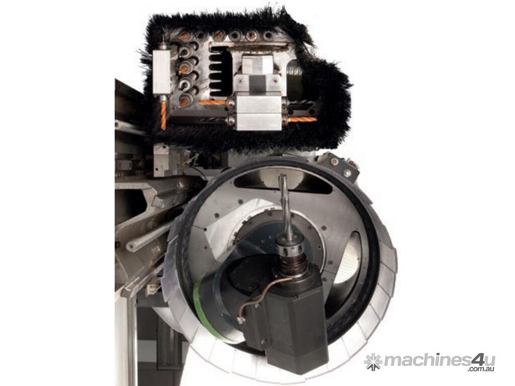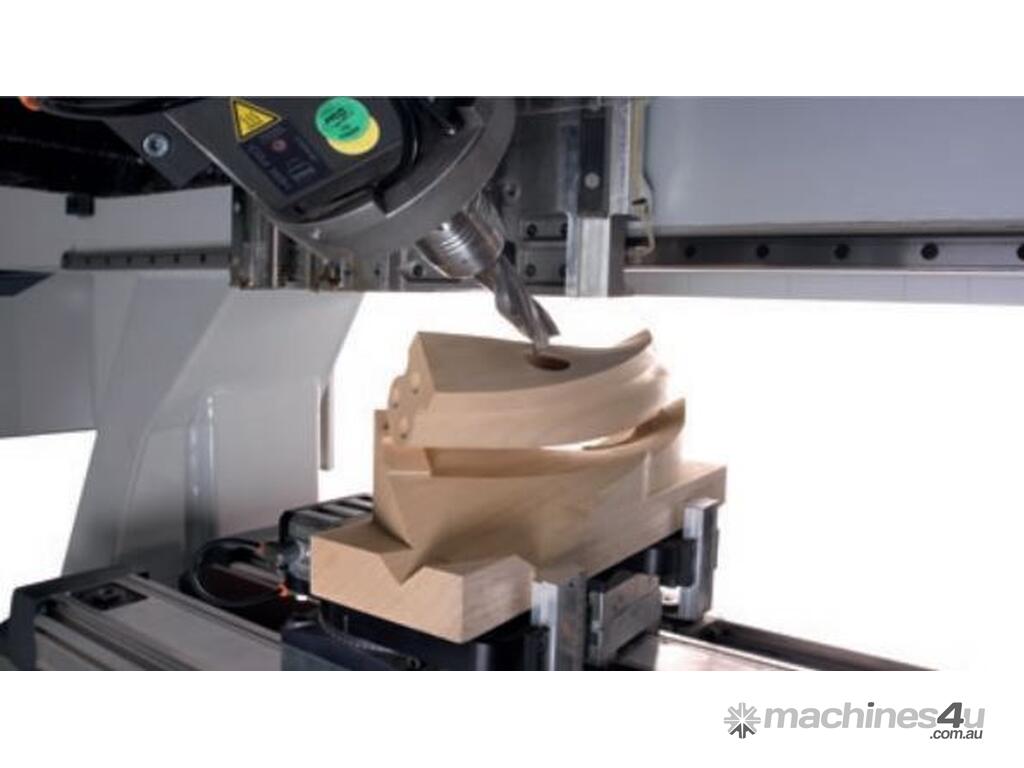 The 5-axis operating section, equipped with 13 kW or 16.5 kW HSD spindle and with 360° continuous rotation on the vertical and horizontal axes, enables the machining of complex-shaped pieces ensuring quality, precision and absolute reliability over time.