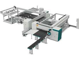 Biesse Rover Cut Pro A T Twin-line panel saw with blade cutting.