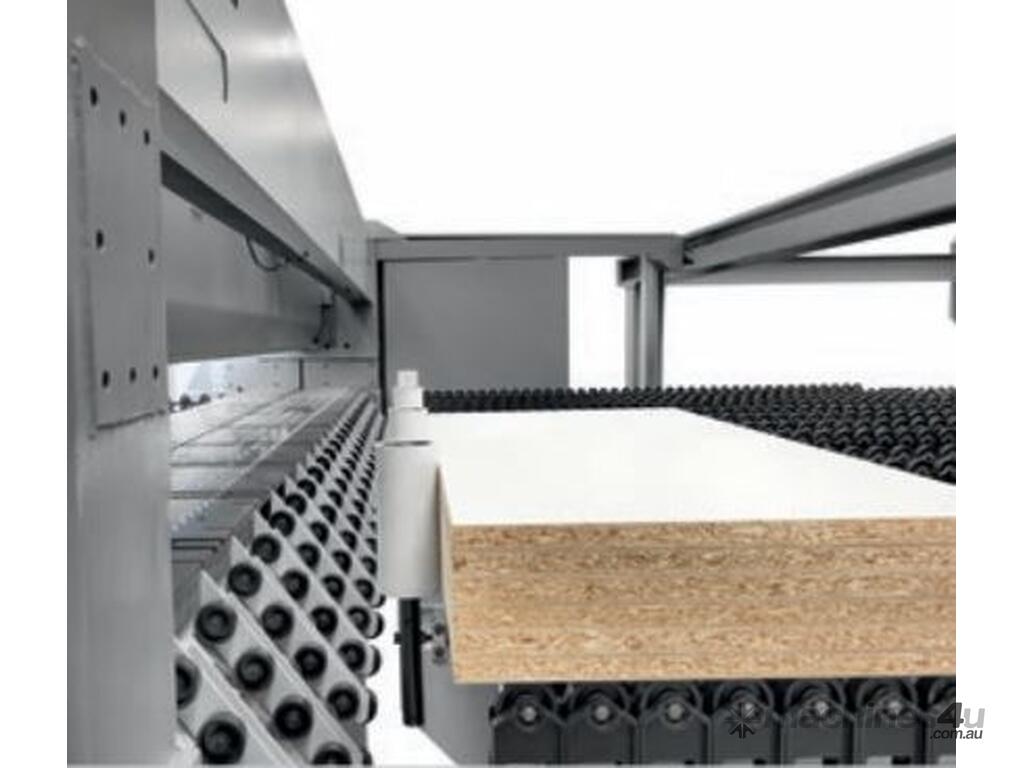The sturdy pushing carriage positions the panels quickly and accurately, thanks to its brushless motor. The slide surface below the pushing device is fitted with independent rollers to avoid marking delicate surfaced panels.