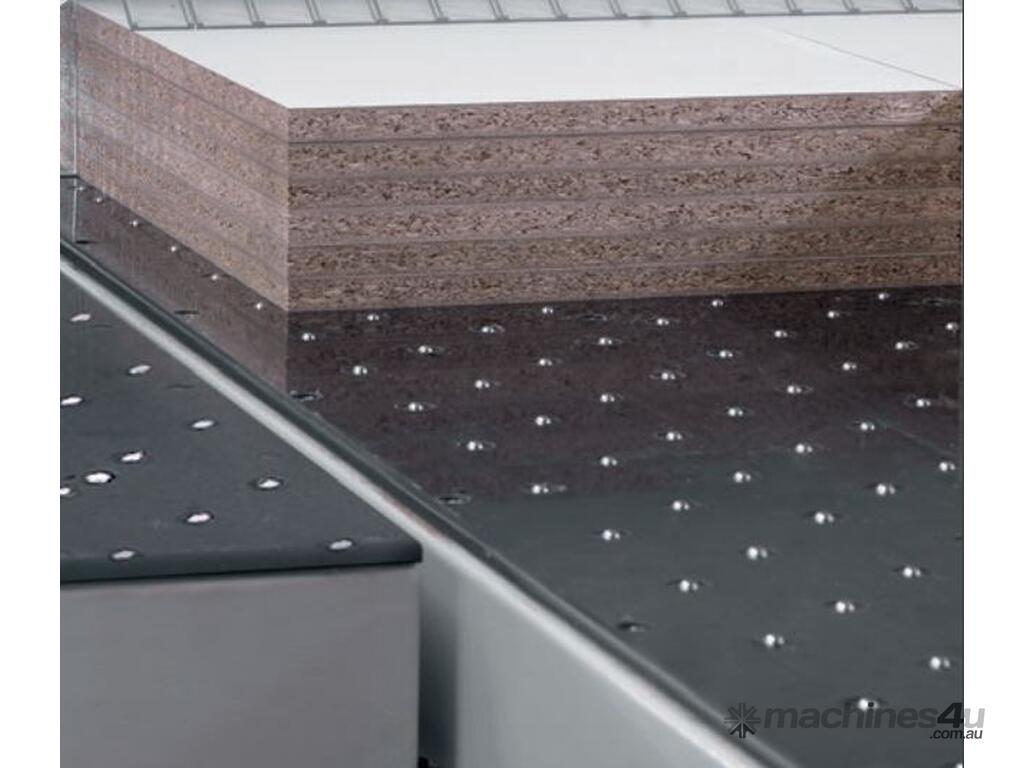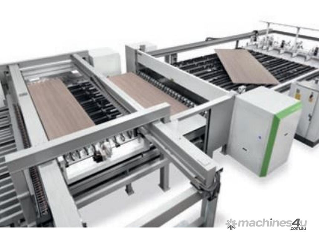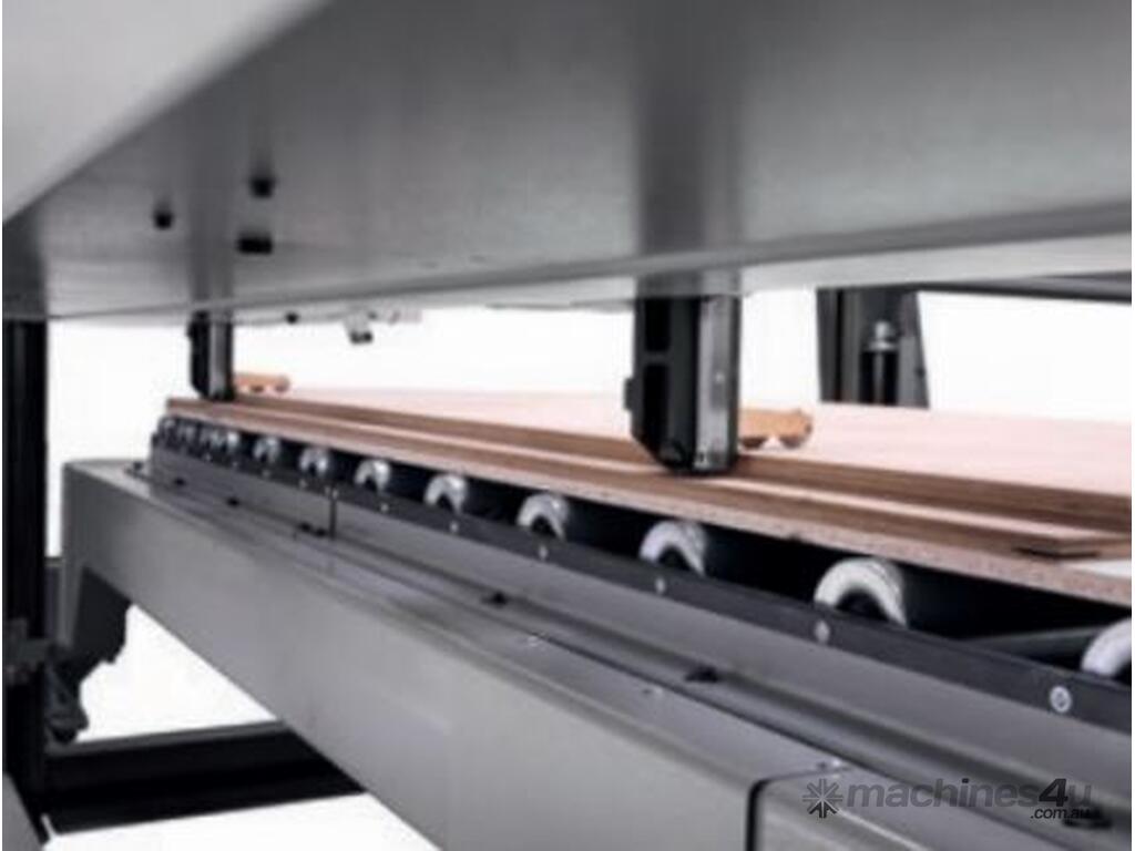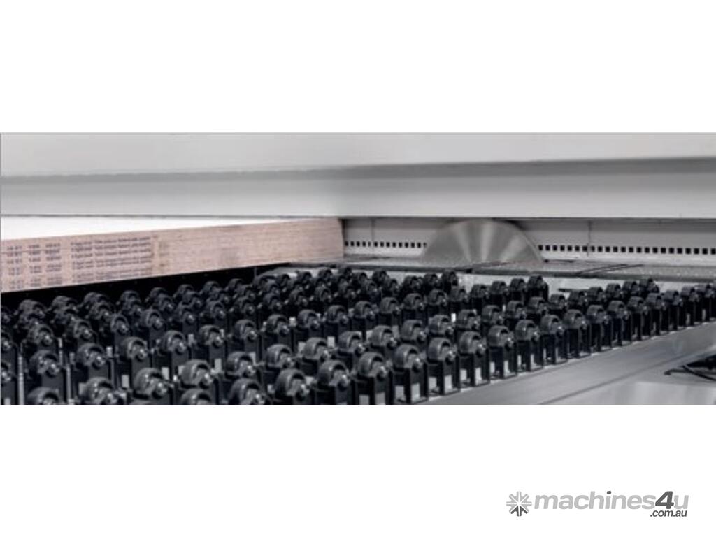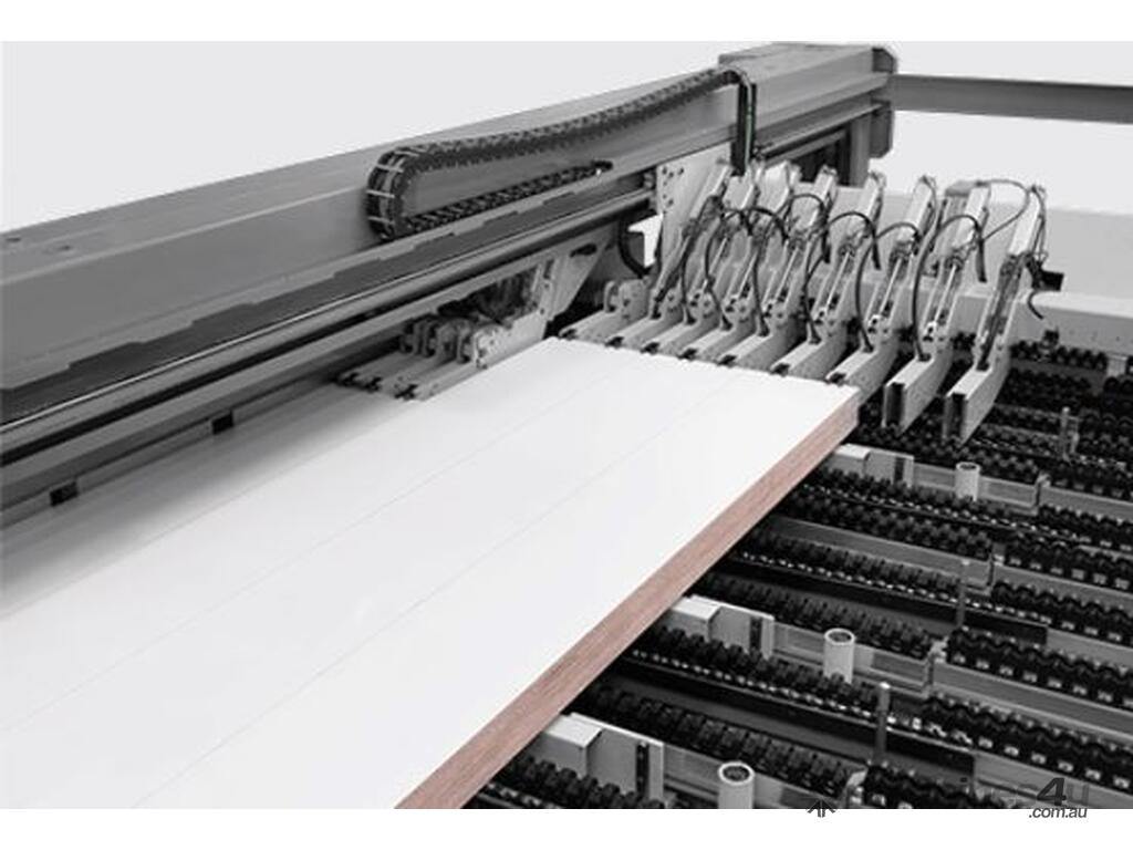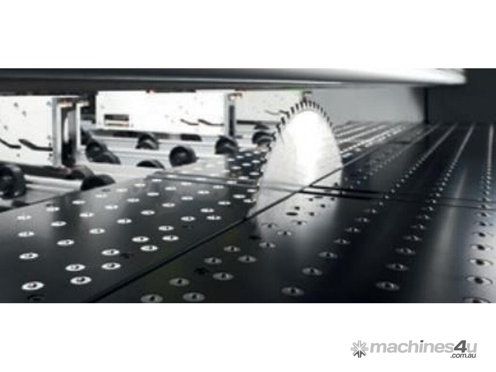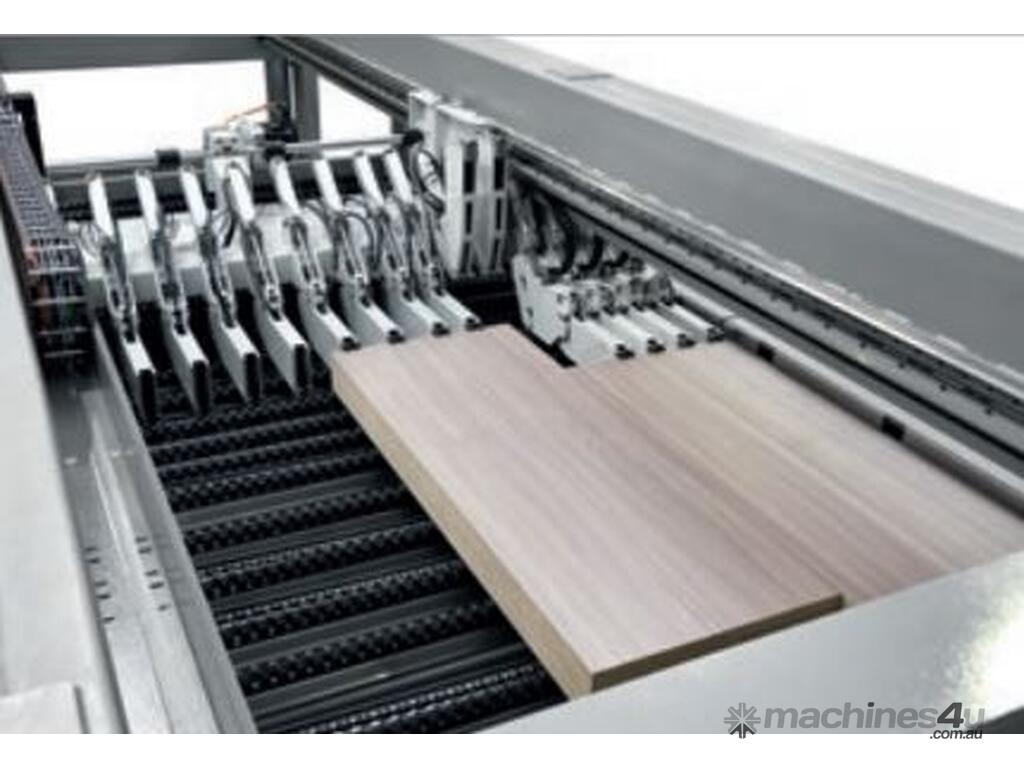 Significant reduction of processing times thanks to the possibility of combining the grippers with any type of cutting patterns in a single cycle. System for performing simultaneous transverse cuts due to the two fully independent pushing devices and two completely independent motorless grippers. This mechanism changes distance between the two pushing devices and therefore their working field. This enables the processing of panels up to 4500 x 2200 mm.