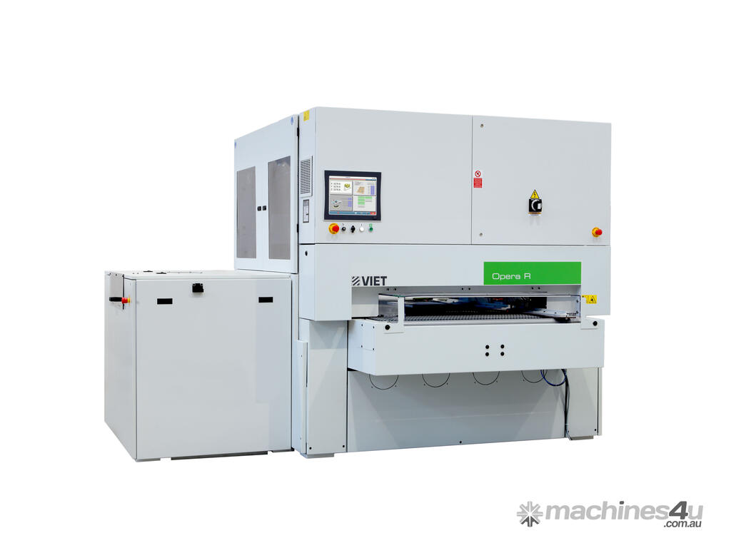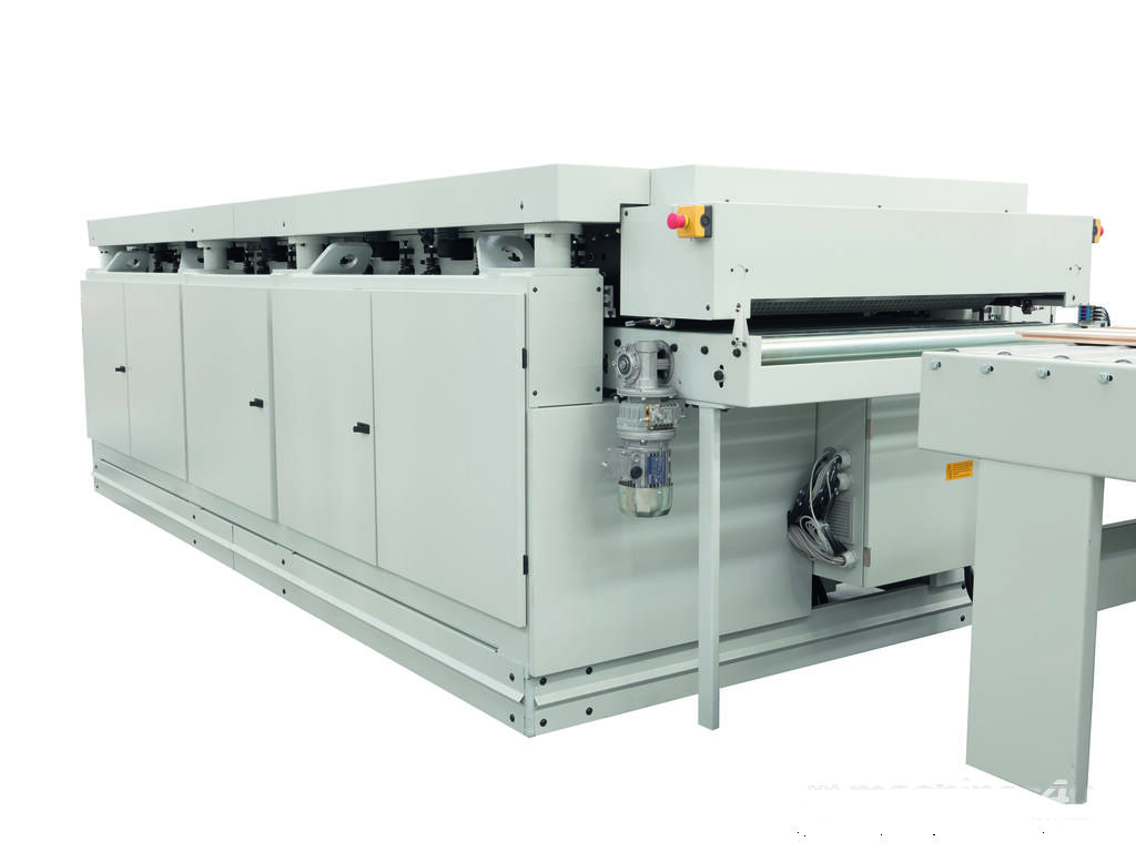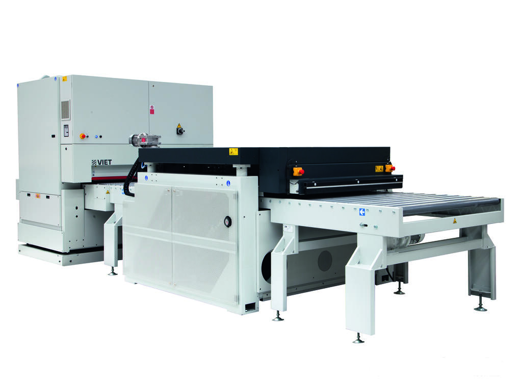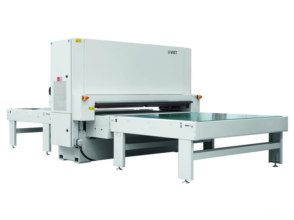 The Valeria lower calibrating machine can be integrated with all mobile-head machines in the Viet range (fixed work table). Ideal for all production lines that perform different machining or finishing operations on the two sides of the panel.