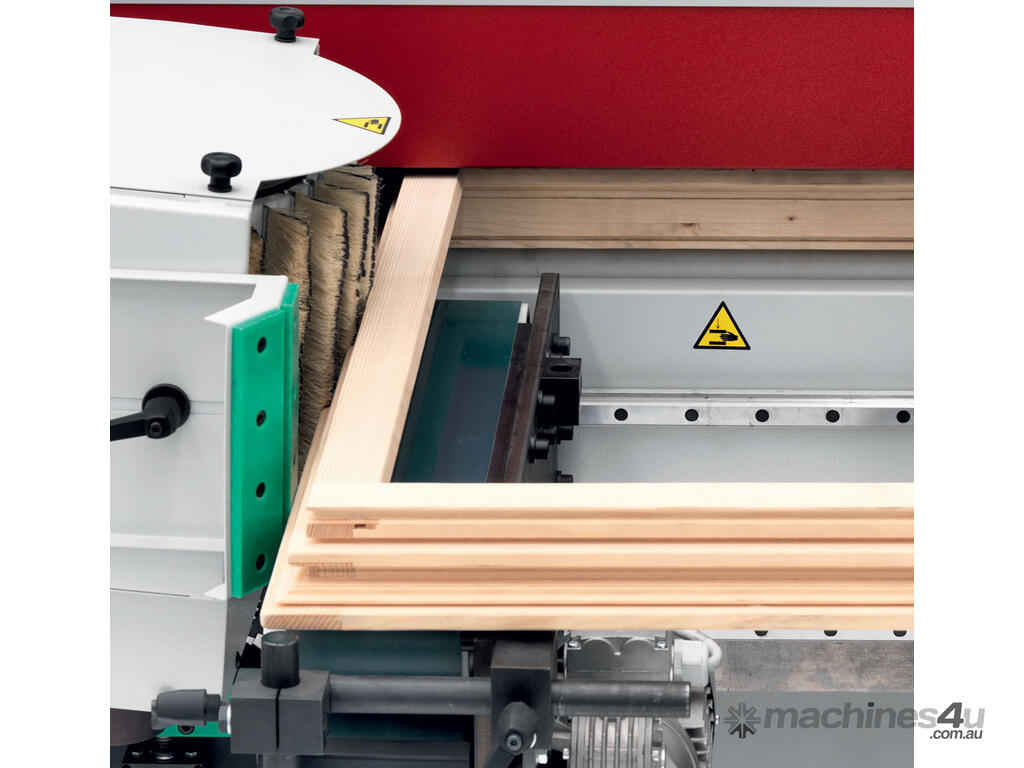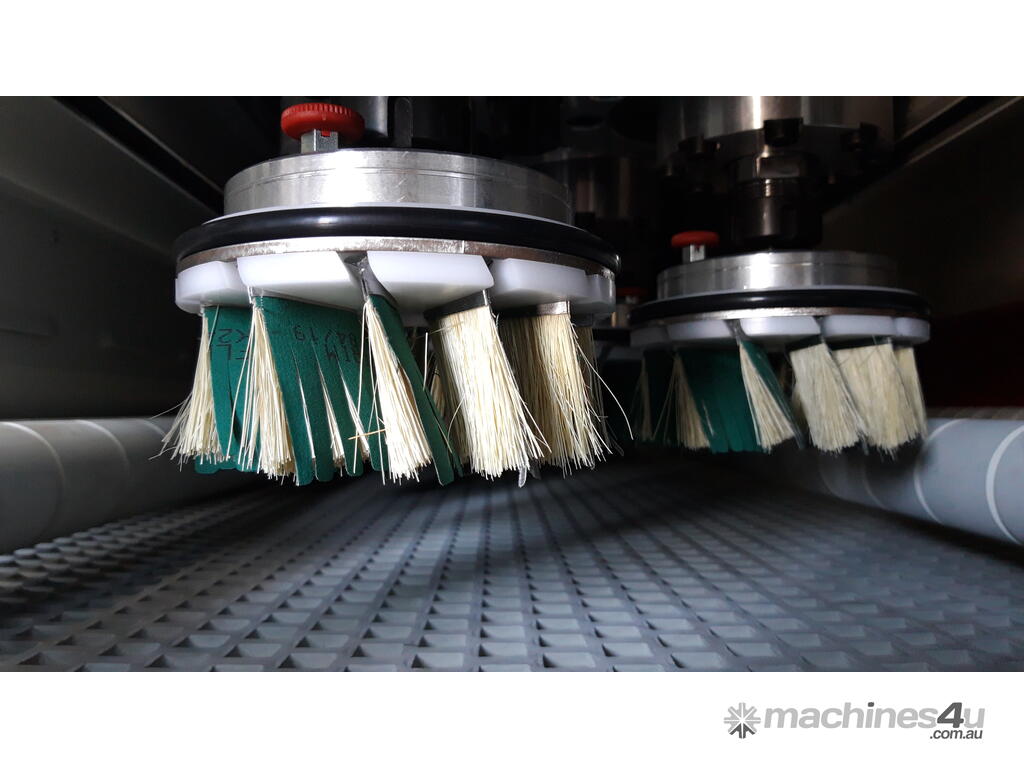 Exceptional finish quality. The unit with vertical win brushes is a vertical rotating brush sanding system. The unit enables customers to sand via a brushing action the profiles and side surfaces, ensuring an even finish. Individual units, equipped with large cross-section brushes (300 or 400 mm), can be adjusted independently as far as side position, angle (-10° +35°) and height.