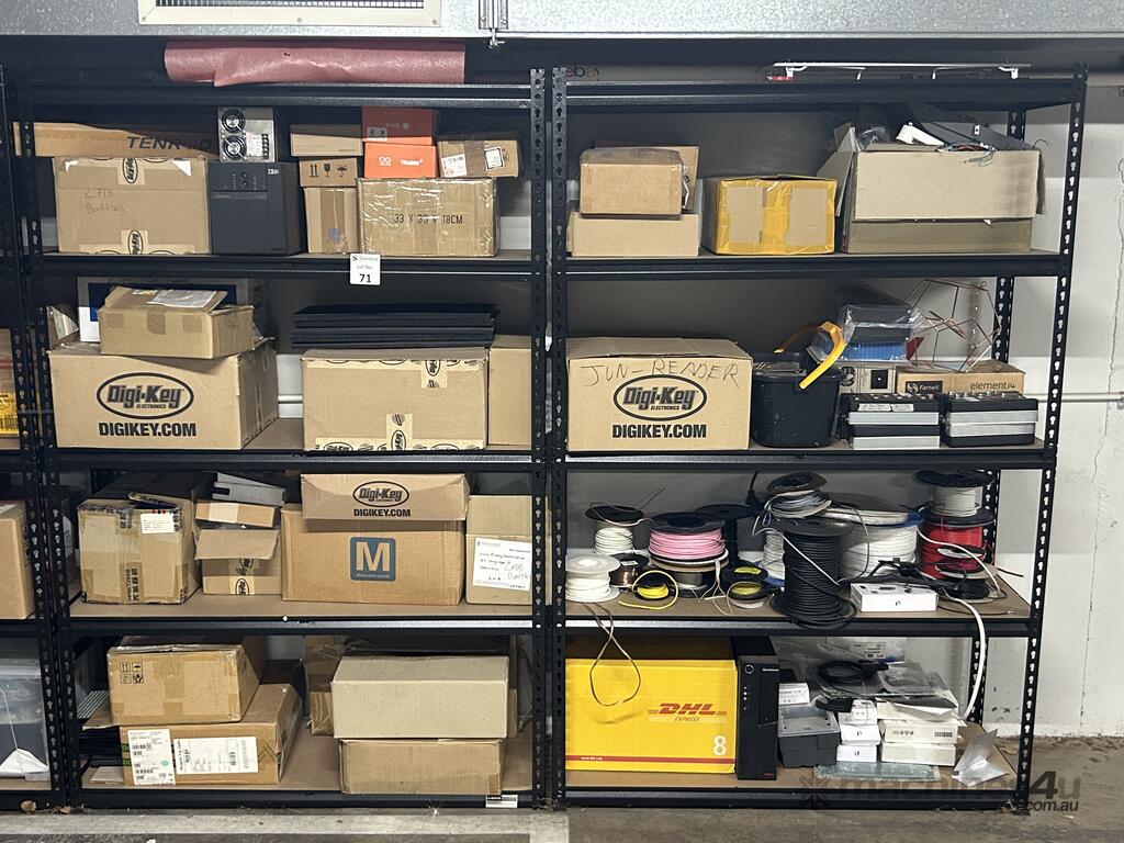 5x 5 Tier Shelving Units Including Contents, Dimensions:1200mm X 1850mm. Please Note Forklift Will Not Operate In This Area. Please Note This Is Located At Basement Level With Steep Entrance And Exit. Height Maximum Is 2.1m. Inspection Highly Reccommended.