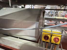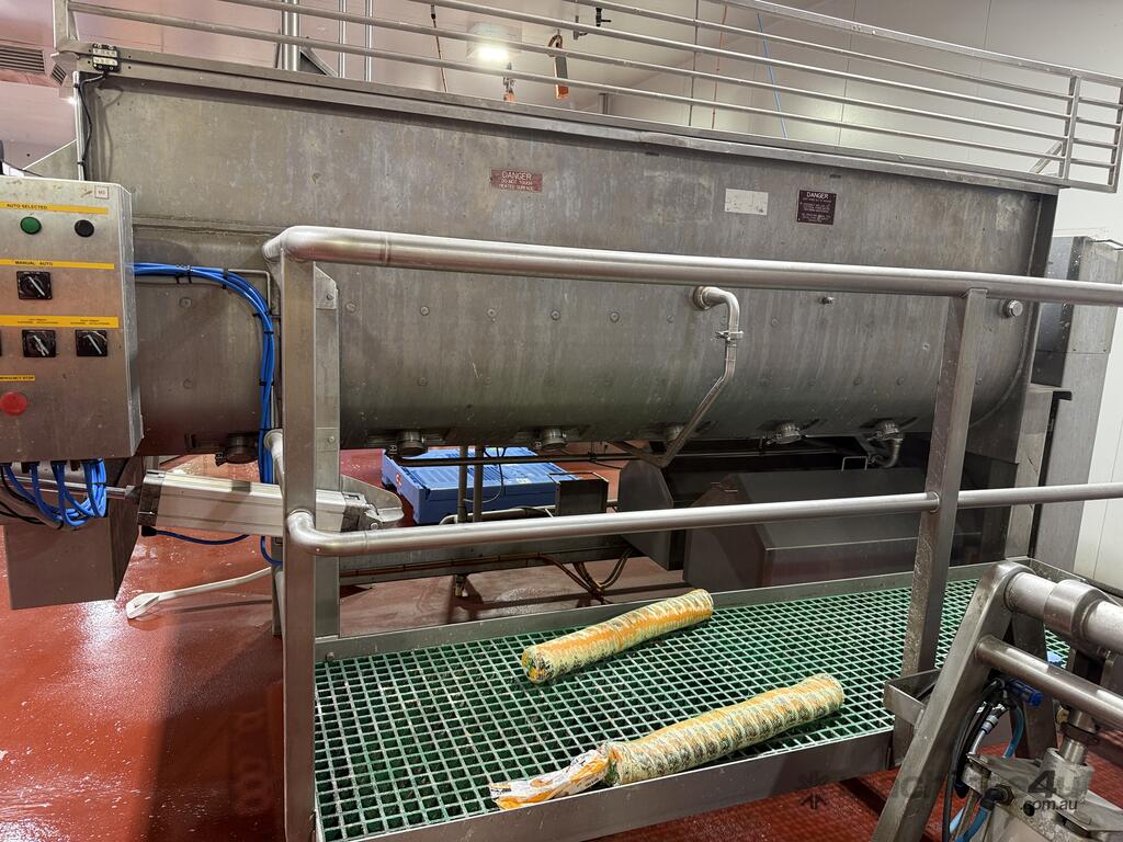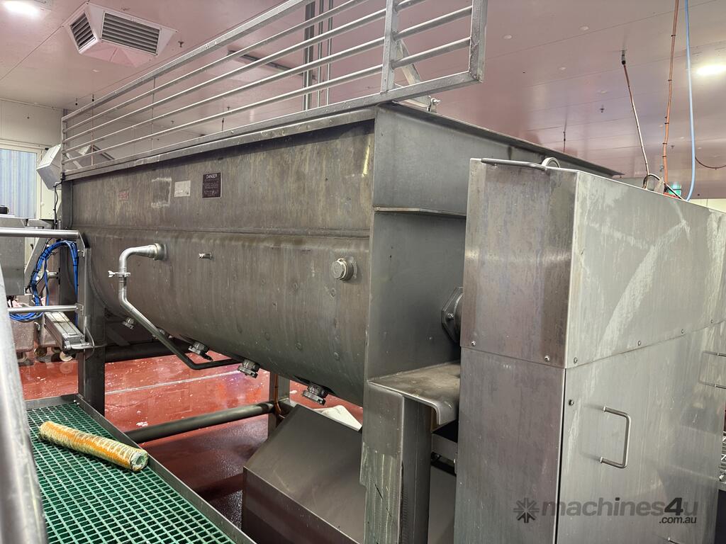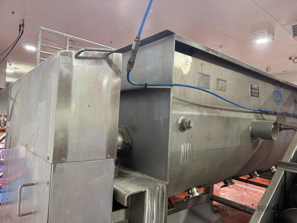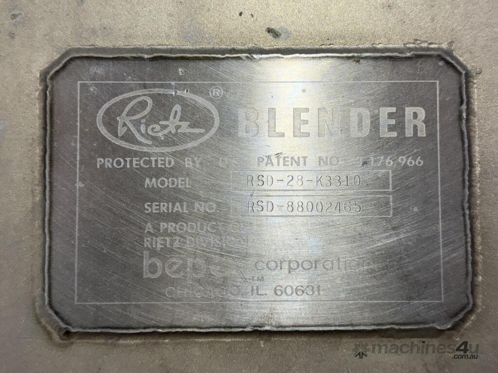 RIETZ jacketed cooker/blender is all stainless steel and features top loading with twin bomb door end outlet.