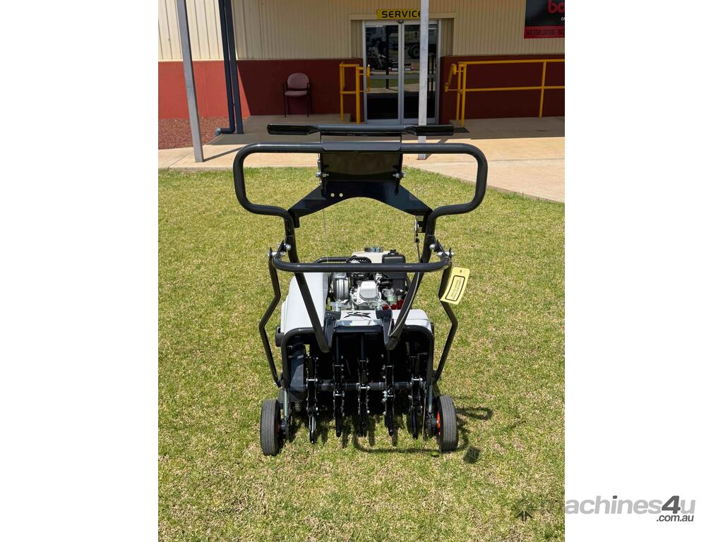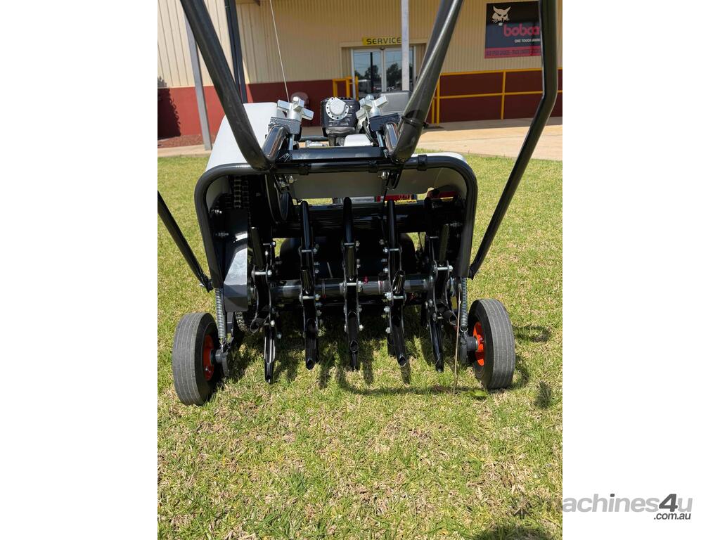 Brand new bobcat walk behind AE19 aerator with a Honda GX120 with 19 inch working width 30 coring tines all operating controls located on handle bar with easy steer and folding handle for storage and transport.