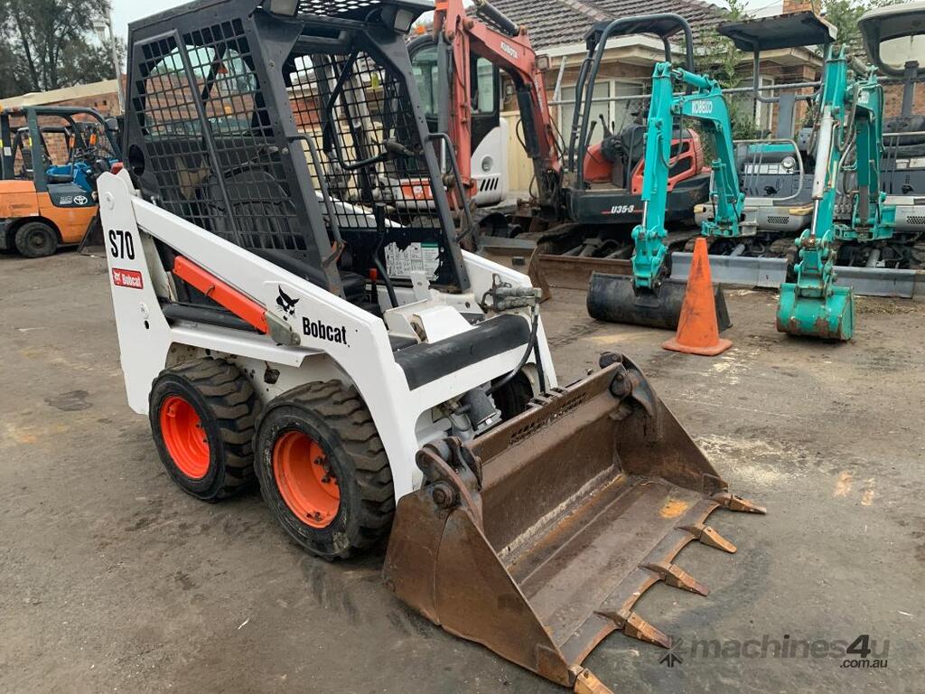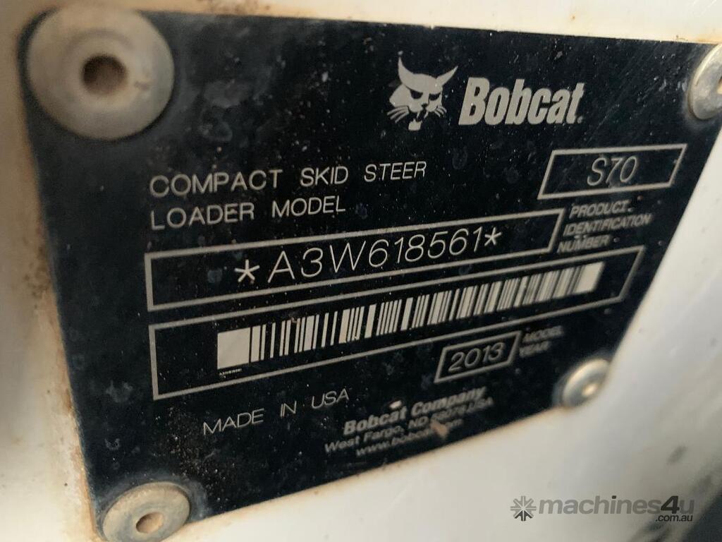 3. Bobcat S70, s/n. A3W 618561, cage with Daken 1150 mm W 4 in 1 bucket, 2013 model, 1000 mm wide, 1.26 tonne machine, 23.5 HP, 3061 hours, $20,950.00 + GST
