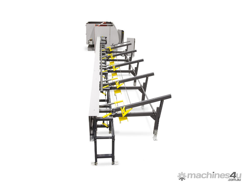 The Individual 520.360 DGANC 2300 machine is the automatic band saw of two-column design with CNC control providing possibility of automatic double angular cutting. Saw swivelling is smooth within range -60 and +60°. It is possible to clamp a cut either single pieces, or complete bundles of material at a time by means of the hydraulic bundle clamping device. Maximum length of one feed is 2300 mm, but is individually adaptable to the customer needs between 2300mm-6000mm (optional accessiories at extra cost).