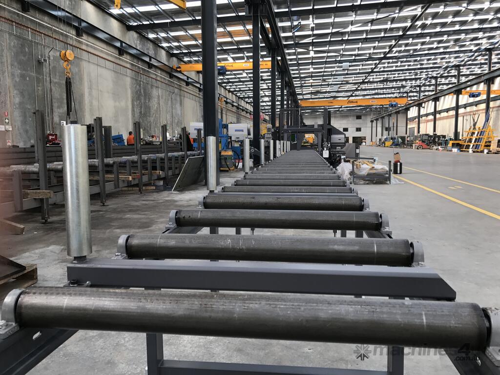 The handling program offers simple, precise length measuring systems in almost unlimited lengths for custom adjustment to your requirements. The versions range from a simple, completely manual measuring stop, to a digital measuring stop with hand wheel setting, all the way to a high-precision NC measuring stop with a sensitive limit switch for cutting heavy materials to exact length in coordination with propelled roll conveyors.