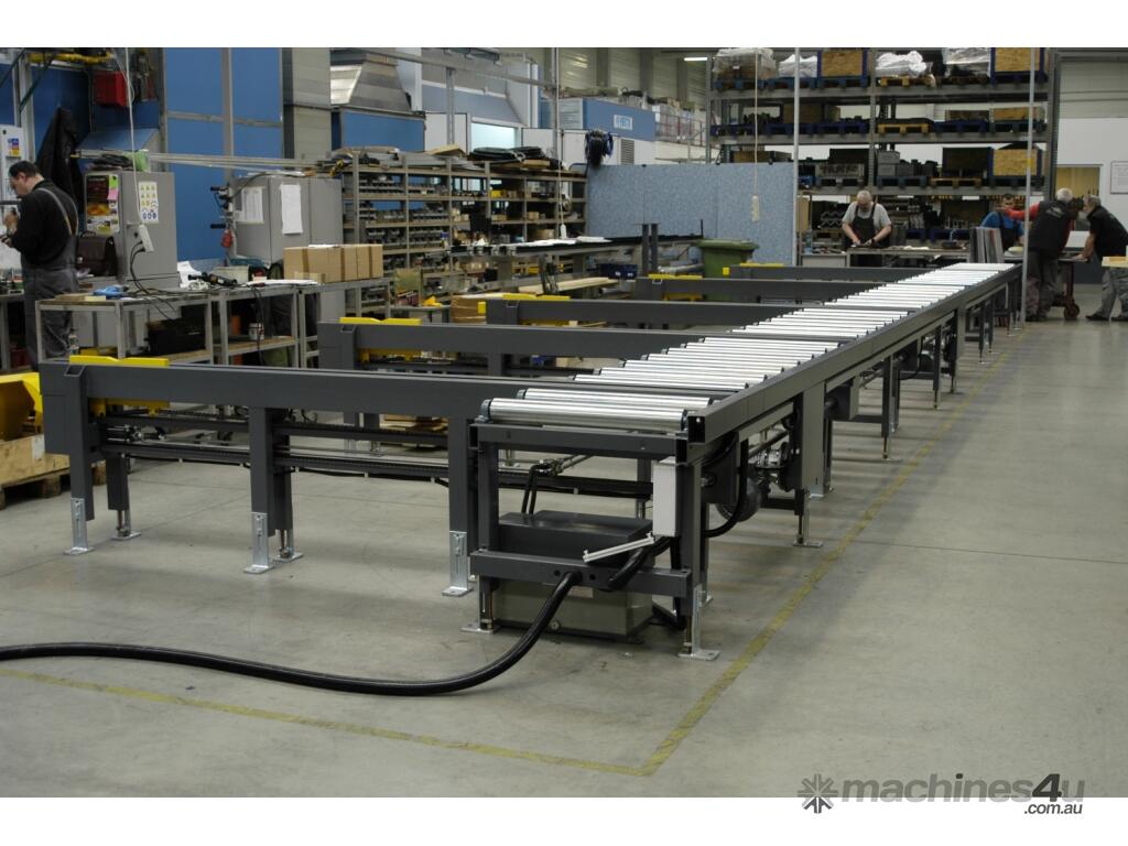 Easy on material in a trolley version, as a chain cross conveyor or as a slide unit with pushing fingers that can be used on both sides.