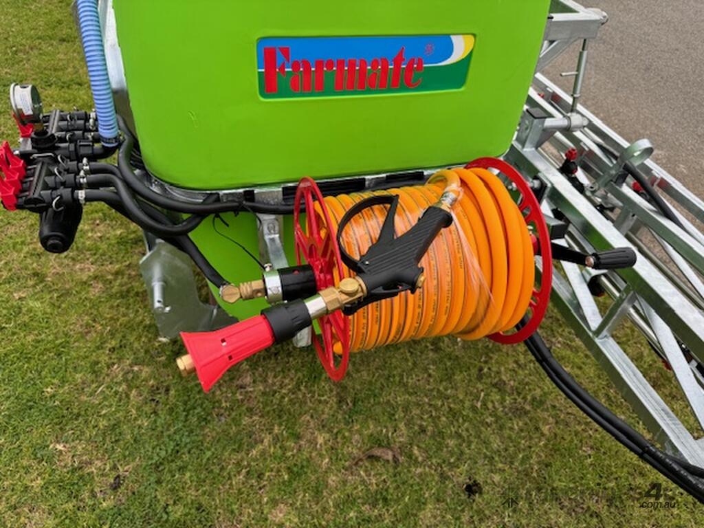 Boom Sprayer 3PL 600L 12m Boom Farmate New. Fold out boom. Galvanised frame and boom. Hand wash tank. Flushing tank. Filter. PTO shaft. Hand reel and sprayer.