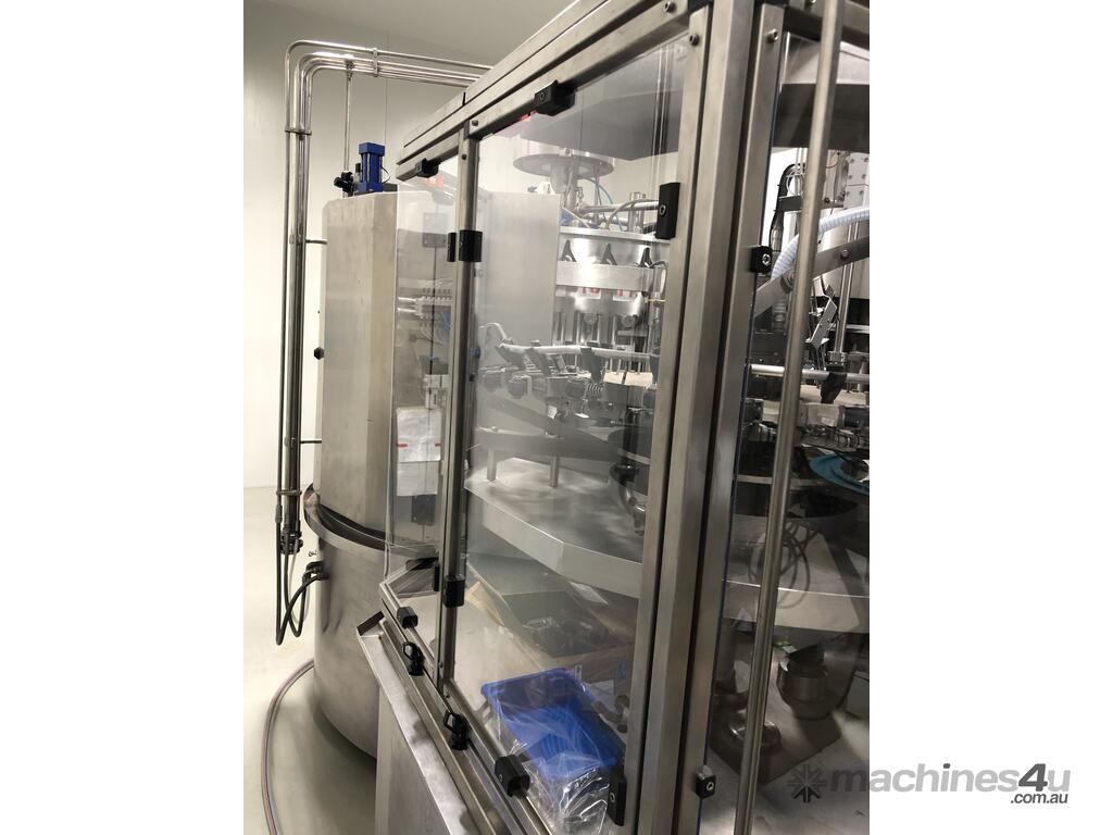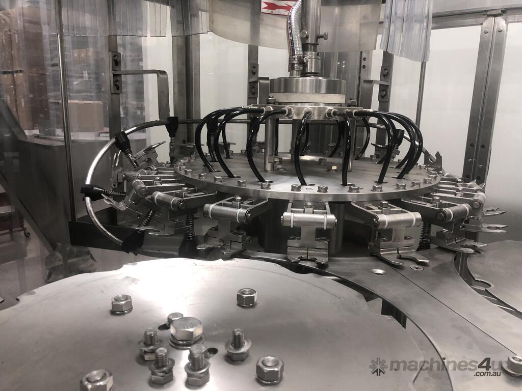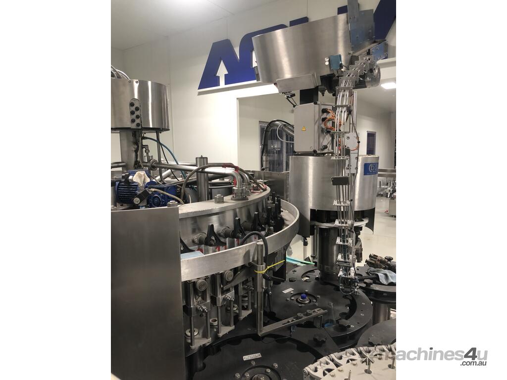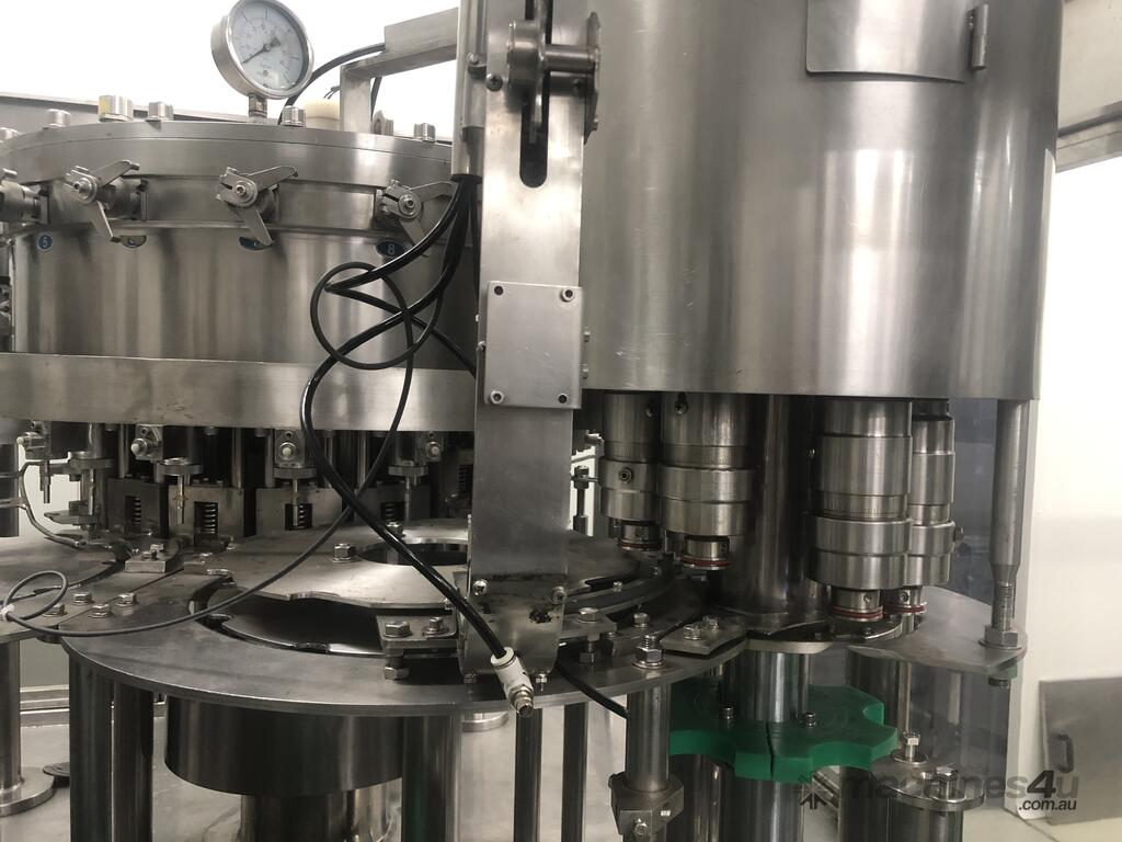 Recently rebuilt Counter pressure filler for Cider, soft drinks , water still and sparkling - It can run PET and glass and has 10 pick and place capping heads for plastic caps and 10 heads for 28mm ropp aluminium closures as well an automatic cap feeding system. Numerous change parts Can be inspected in Melbourne and t in excellent condition