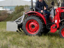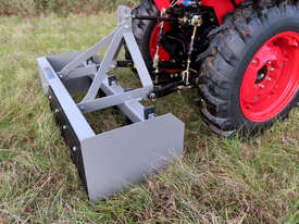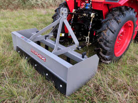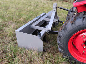 The rear blade acts as a conventional grader blade, however the added weight of the box frame provides increased downward pressure and bite into the ground. The box scraper traps and redistributes the newly ripped soil while simultaneously collecting debris such as roots and plant matter within the confines of the box. A work area can be prepared and cleaned in one action, saving time.