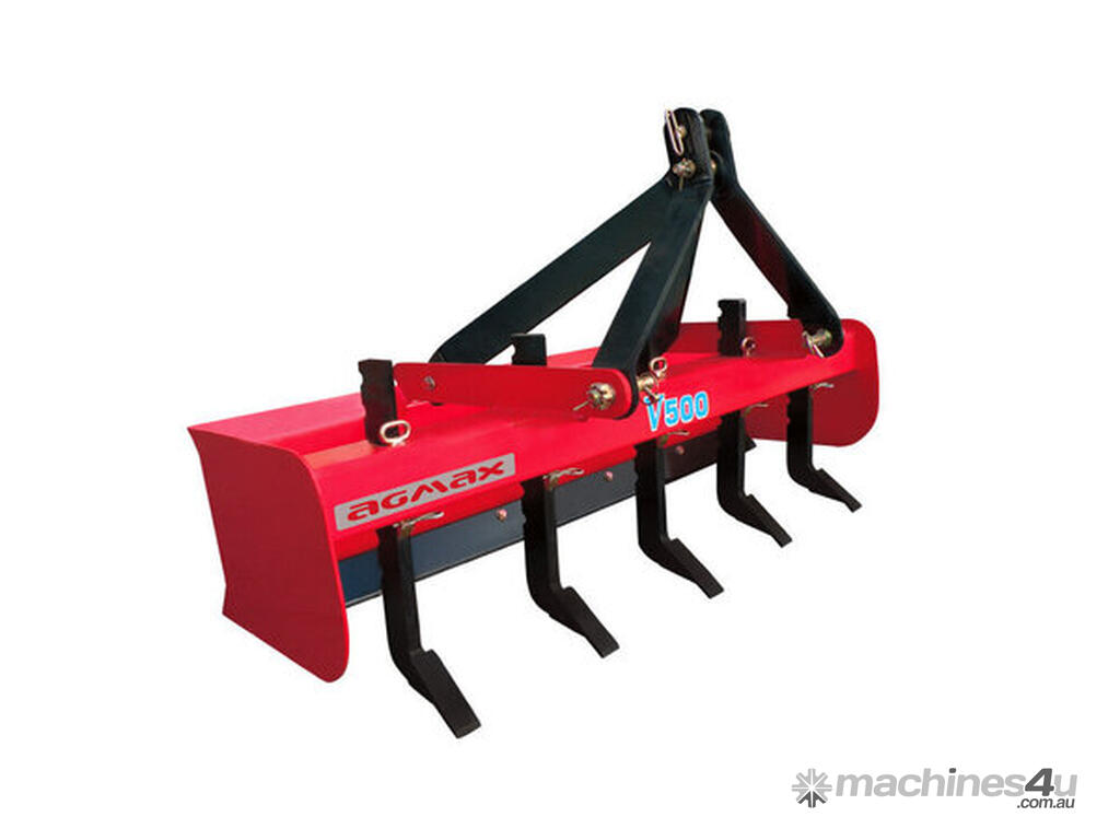 AGMAX V500 5' box scraper, also known as a tractor box blade, suits tractors 30-55hp (Cat 1 or 2). 2 year warranty. Rip, grade and level soil. Adjustable tines. Increased downward pressure, heaviest in its class.