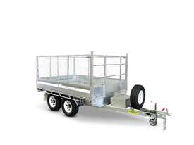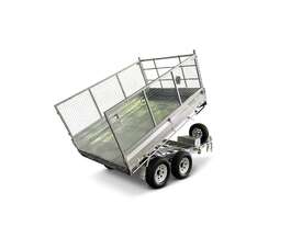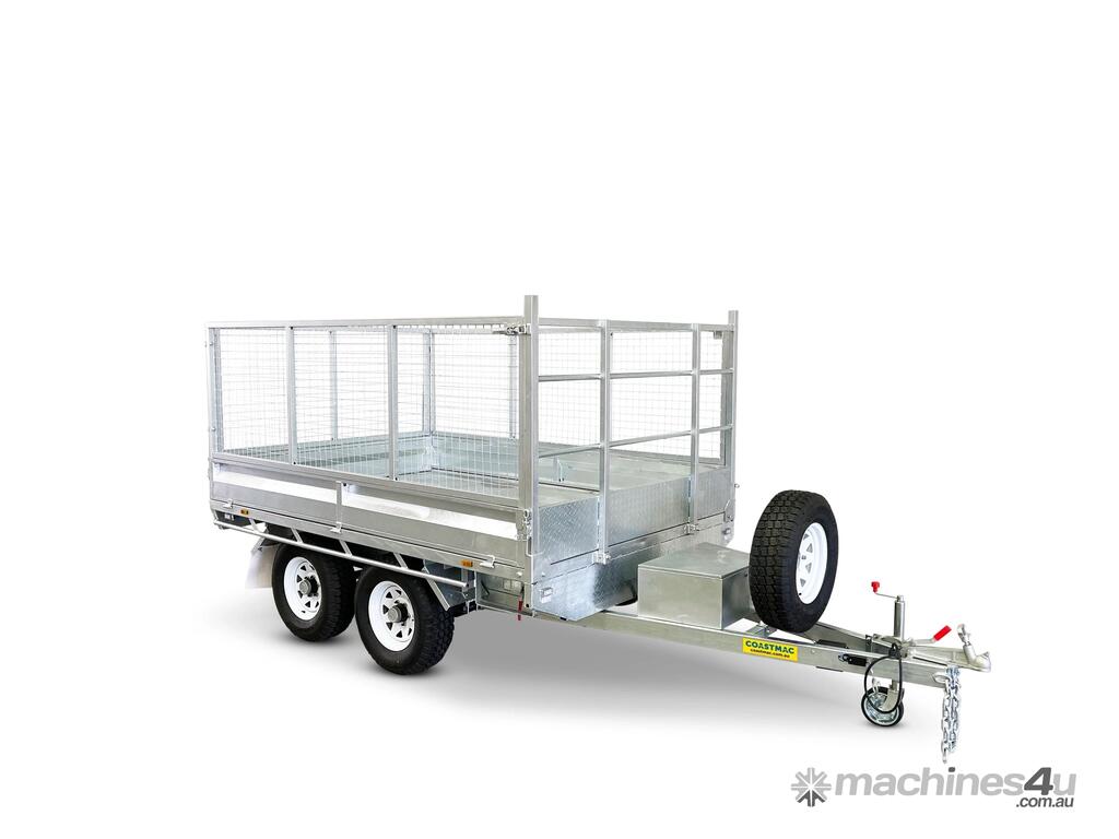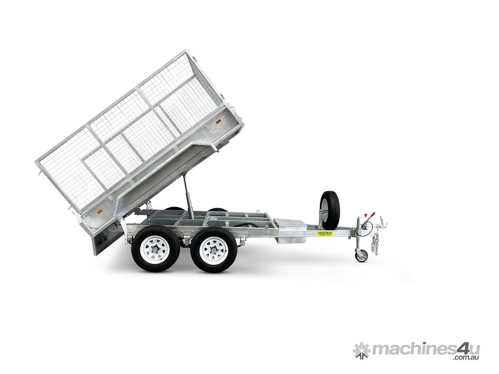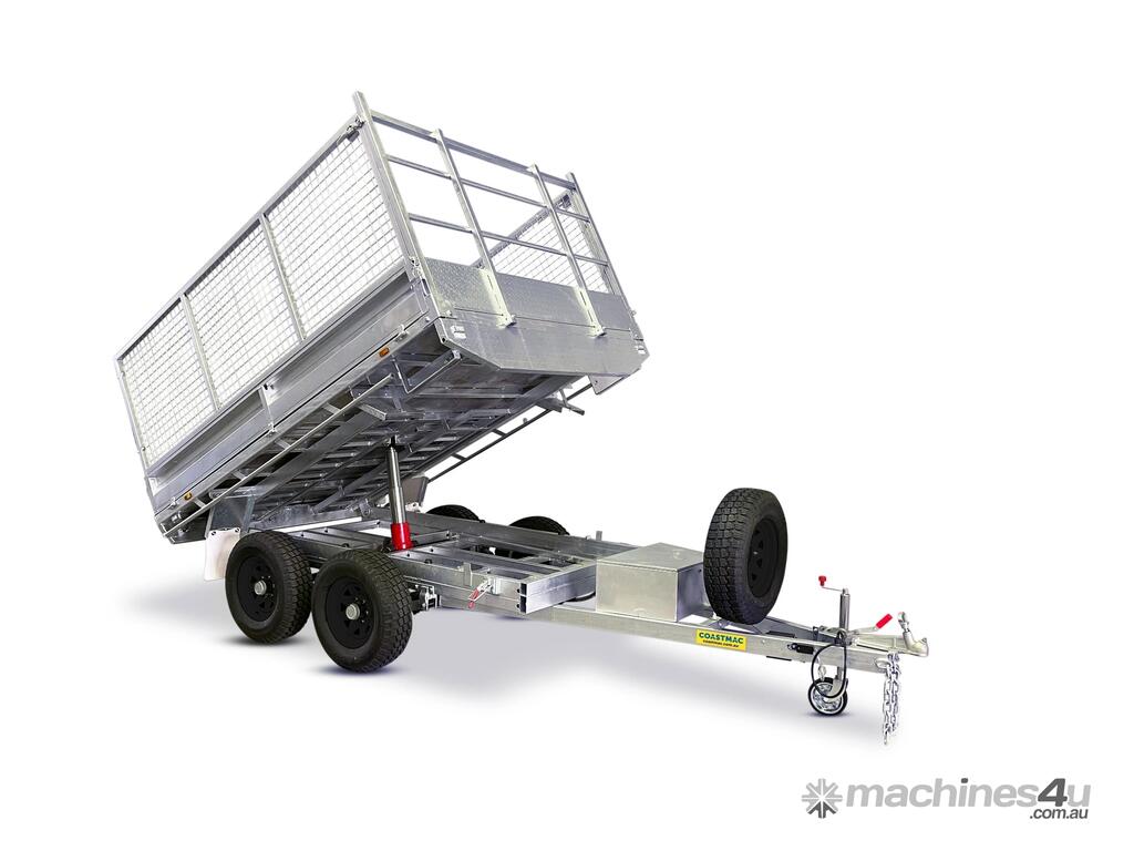 3000l x 1500w mmA tipper trailer enables green waste, sand, gravel, and any other type of loose fill to be unloaded with ease. A battery powered hydraulic arm is used to tilt up the deck of the trailer, which dislodges the trailer contents quickly and with minimal effort.This tipper model uses a 10×5 box for the deck of the trailer, and can carry a load of 2,540kg. The trailer utilises electric brakes and is rated to an ATM of 3.5t.As with all Coastmac trailers, this model is made from high quality, hot dipped galvanised steel, which resists corrosion and the rigours of heavy use.