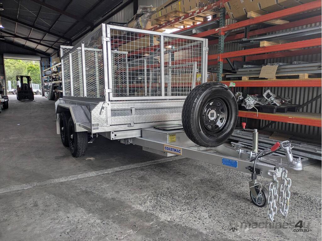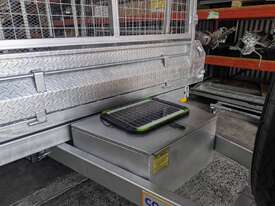 3000l x 1500w mmA tipper trailer enables green waste, sand, gravel, and any other type of loose fill to be unloaded with ease. A battery powered hydraulic arm is used to tilt up the deck of the trailer, which dislodges the trailer contents quickly and with minimal effort.This tipper model uses a 10×5 box for the deck of the trailer, and can carry a load of 2,540kg. The trailer utilises electric brakes and is rated to an ATM of 3.5t.As with all Coastmac trailers, this model is made from high quality, hot dipped galvanised steel, which resists corrosion and the rigours of heavy use.