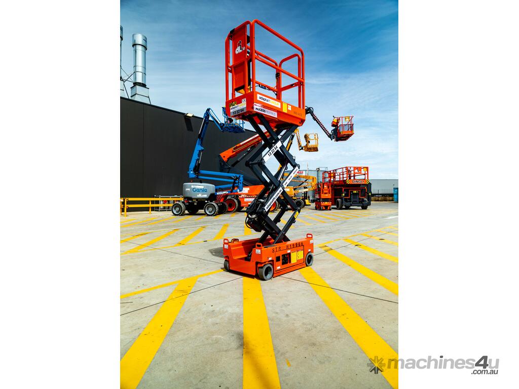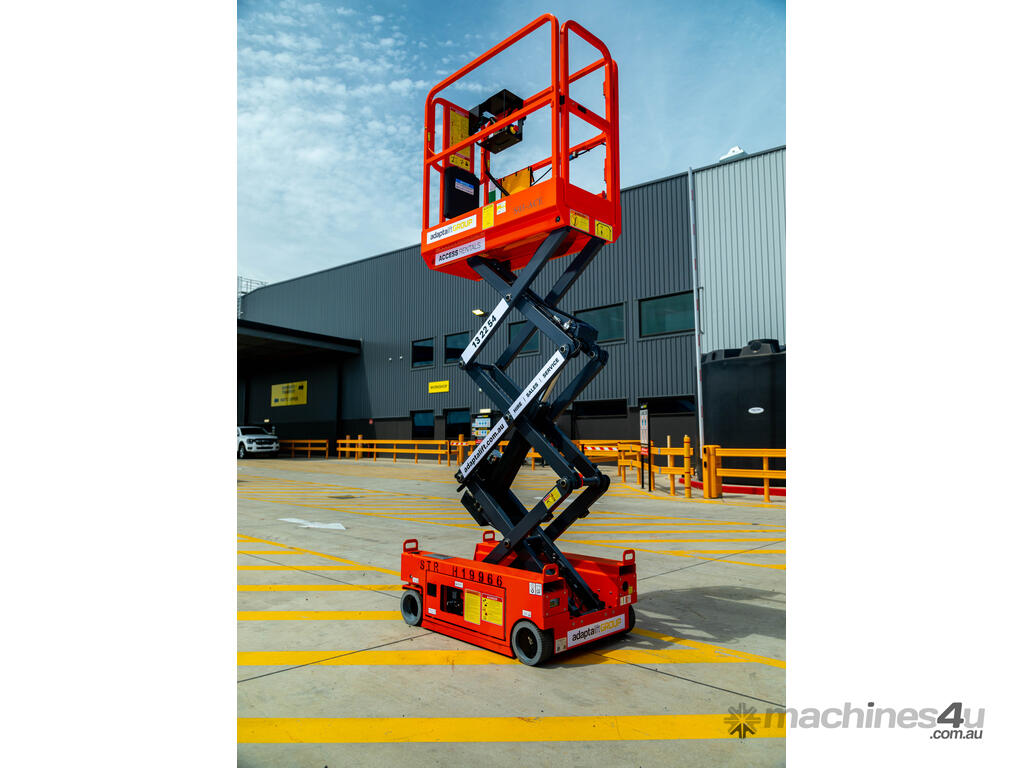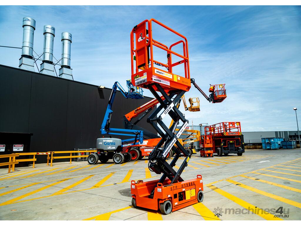 The electric scissor lift features an extendable platform, automatic pothole protection and intelligent ECU.