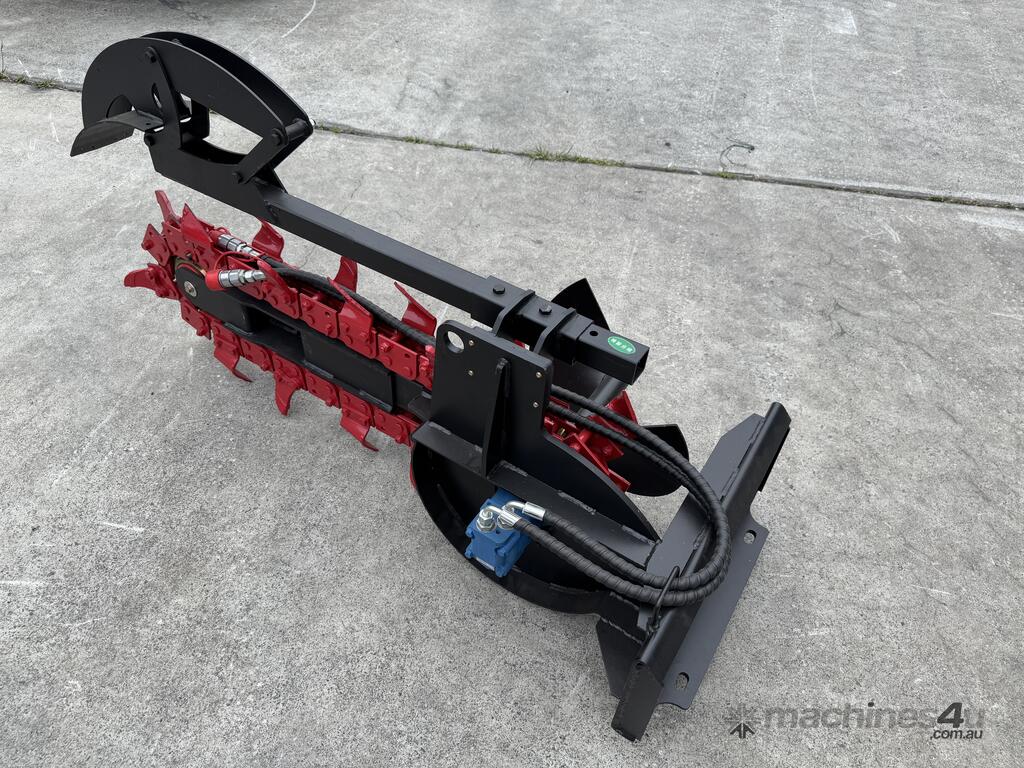 The Hydraulic Trencher is a high-performance attachment designed for digging clean, consistent trenches for irrigation, drainage, electrical, plumbing and general service installation. Adapted for the Australian market, this unit is engineered for use with mini loaders and is compatible with common attachment interfaces such as Kanga and Dingo Mini Multifit Hitch systems.