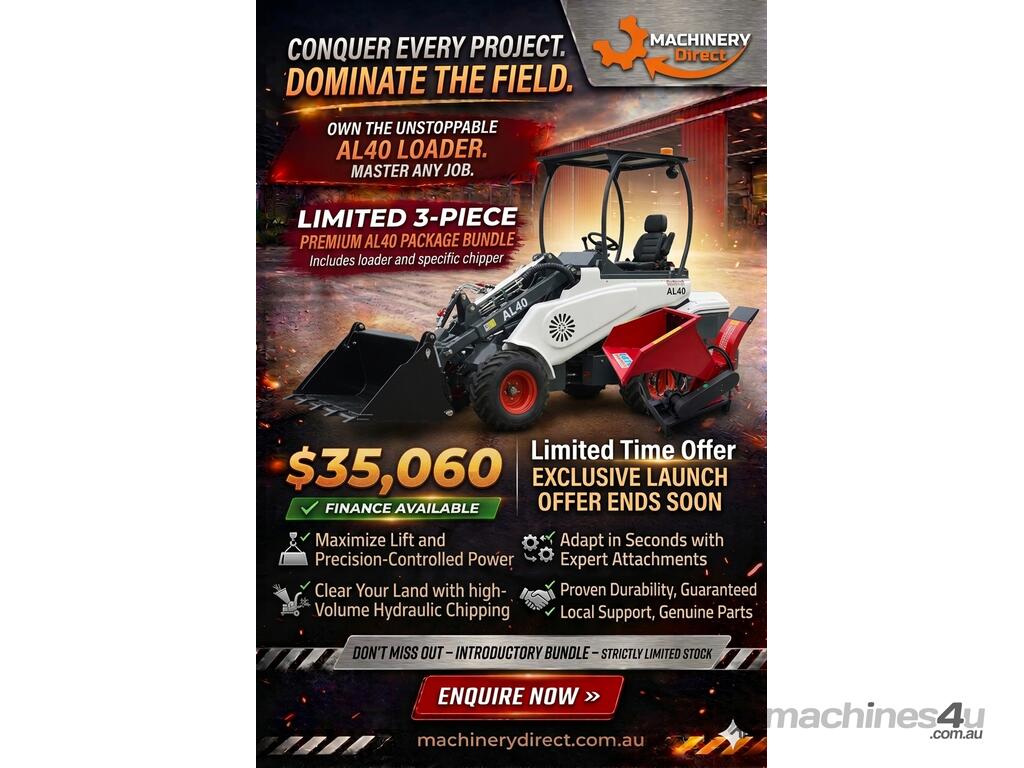 Brand New Ozziquip AL40 Mini Loader 4-in-1 with Hydraulic Chipper 3-Piece Package :      $31,873 AUD($35,060 Inc. GST)