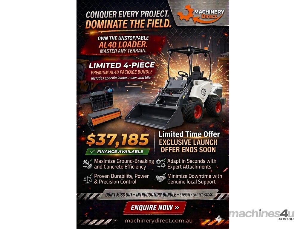Brand New Ozziquip AL40 Mini Loader 4-in-1 with Mixing Bucket and Tiller 4-Piece Package :      $33,805 AUD($37,185 Inc. GST)