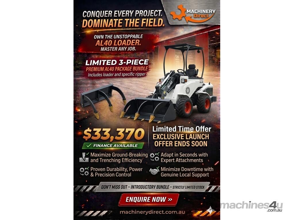 Brand New Ozziquip AL40 Mini Loader 4-in-1 with Ripper 3-Piece Package :      $30,336 AUD($33,370 Inc. GST)