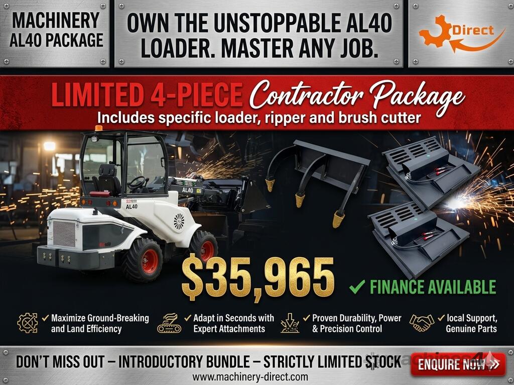 Brand New Ozziquip AL40 Mini Loader 4-in-1 with Ripper & Brush Cutter 4-Piece Package :      $32,695 AUD($35,965 Inc. GST)