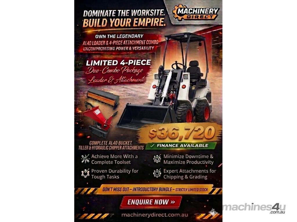 Brand New Ozziquip AL40 Mini Loader 4-in-1 with Tiller & Chipper 4-Piece Package :      $33,382 AUD($36,720 Inc. GST)