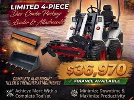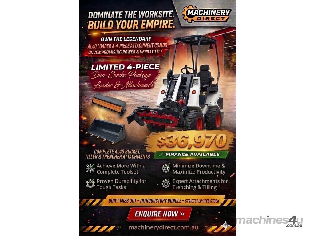 Brand New Ozziquip AL40 Mini Loader 4-in-1 with Tiller, Trencher 4-Piece Package :      $33,609 AUD($36,970 Inc. GST)