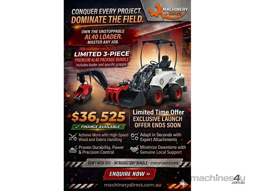 Brand New Ozziquip AL40 Mini Loader 4-in-1 with Wood Grapple 3-Piece Package :      $33,205 AUD($36,525 Inc. GST)