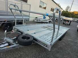 5500l x 2220w mmAn open car trailer used by logistics professionals. This is a twin axle model with 3500Kg gross capacity, available with a wide range of options.