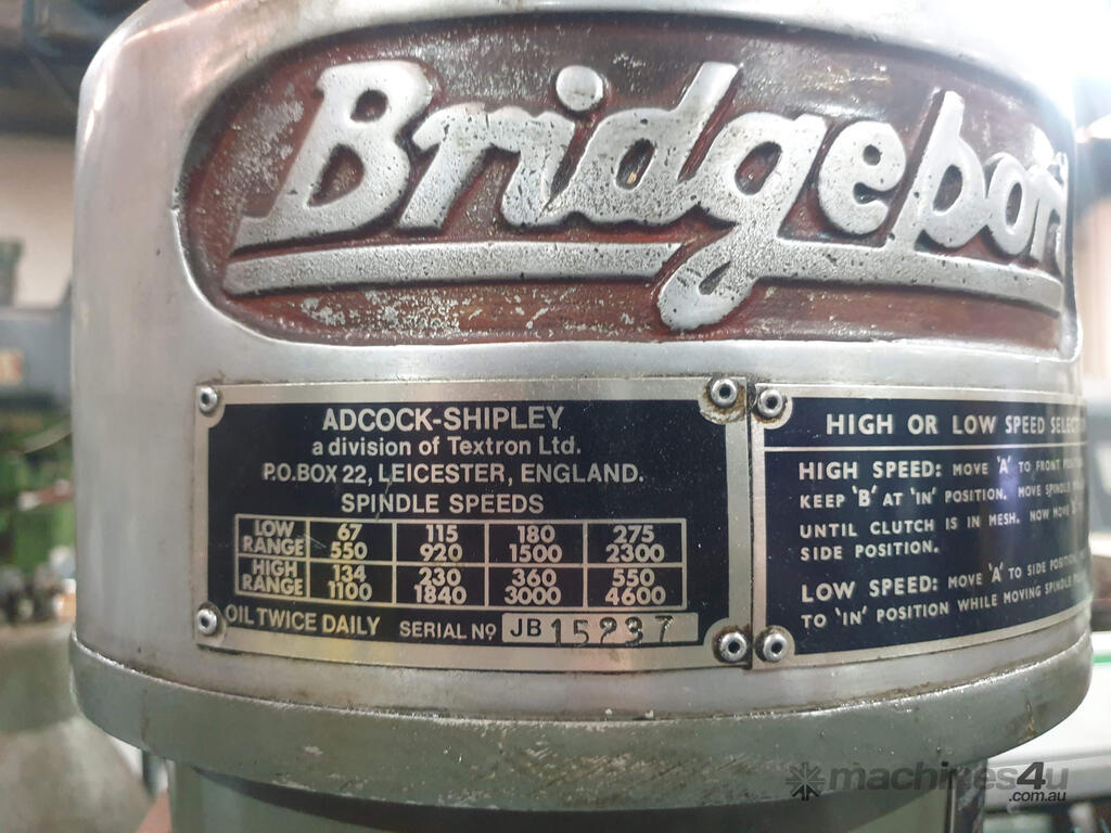 This Bridgeport turret mill was manufactured in the UK by Adcock & Shipley & is in good used condition.