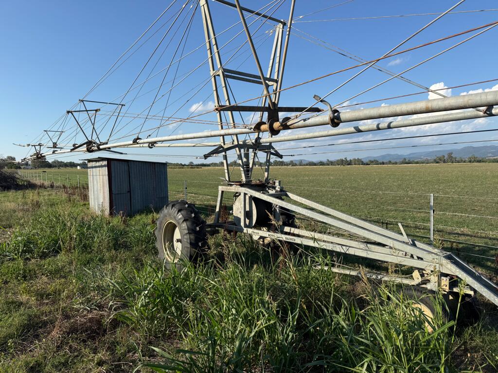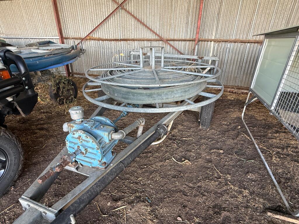 Briggs Roto Rainer Rotating Irrigator. 50m Boom. Equipped with approx 200m PTO Hose Reel. Dismantling for transport at the responsibility of the purchaser.