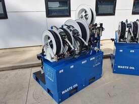 > Two 15m x 1/2" spring-retract steel case hose reels for SUPPLY OIL