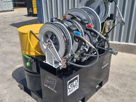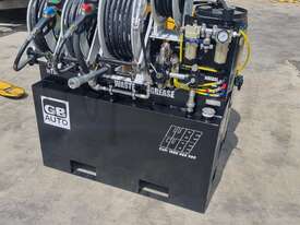 > [Optional] 20kg GREASE SUPPLY pump set with mounted hose reel, pump, and nozzle.