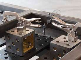 - Table Mount C-Clamps can be mounted to the Riser Blocks for push down clamping for taller workpieces.