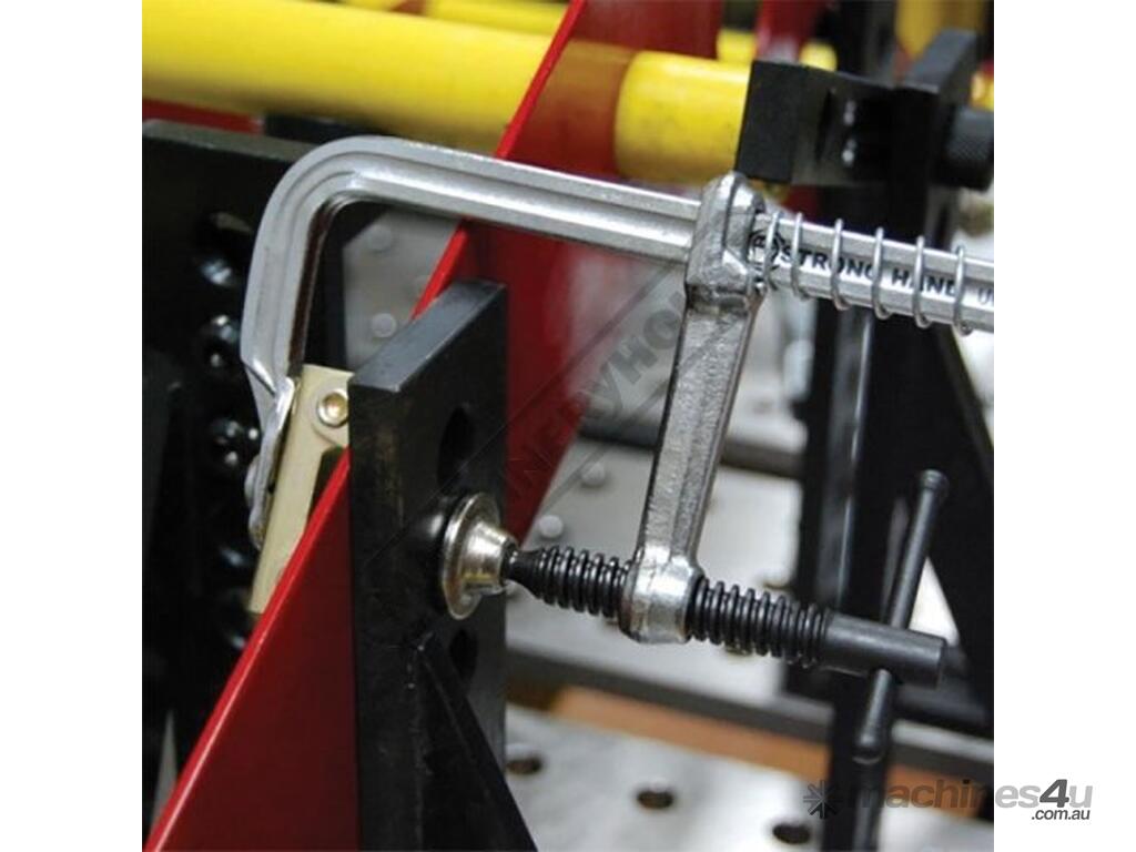 The spring-loaded, one-handed clamp with quick-set magnetic V-Pad. Squeeze to open, set in position and turn to tighten. 225kg clamping pressure.