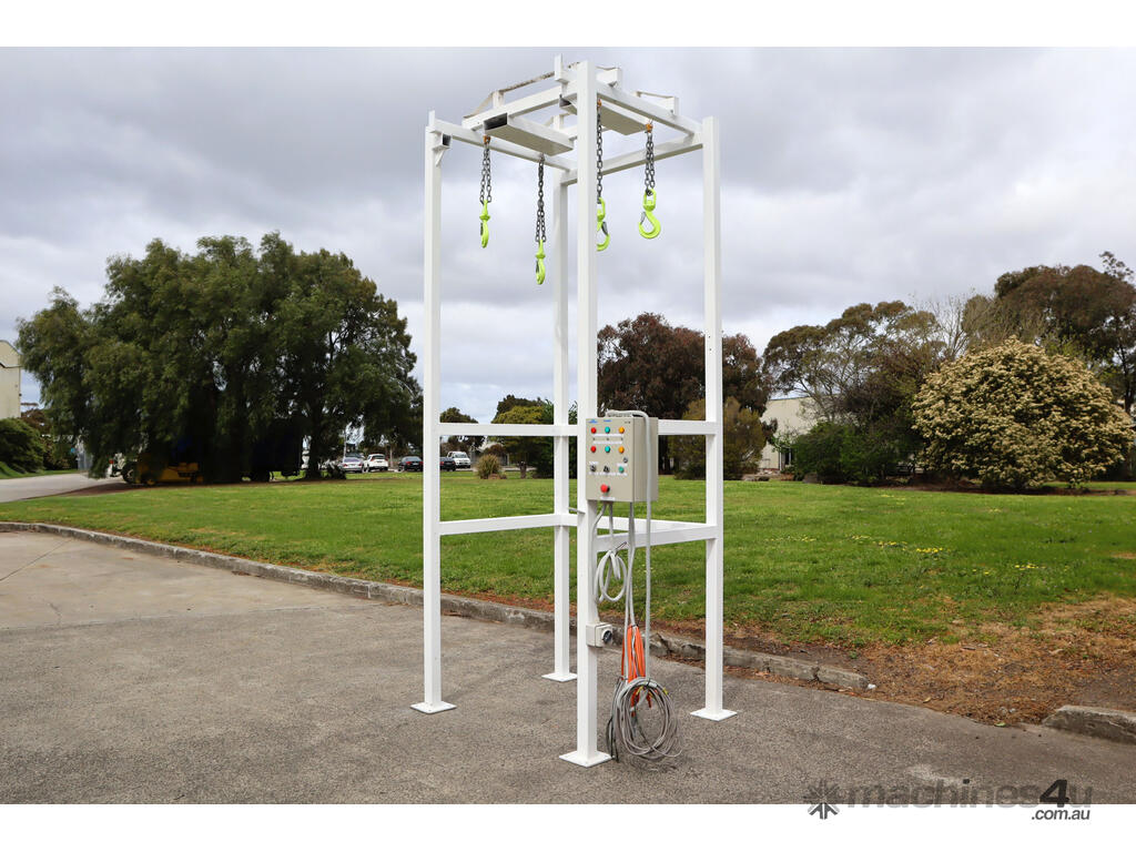 Equipped with an integrated electrical control panel, chain lifting hooks, and a sturdy steel support frame. This unit is built to handle large bags.