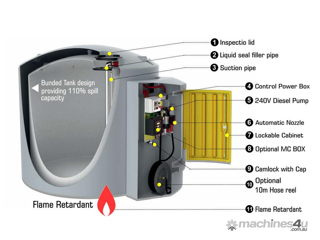 Australian manufactured and complies to AS1940:2017 specifications for on farm and commercial storage of bulk Diesel fuel..