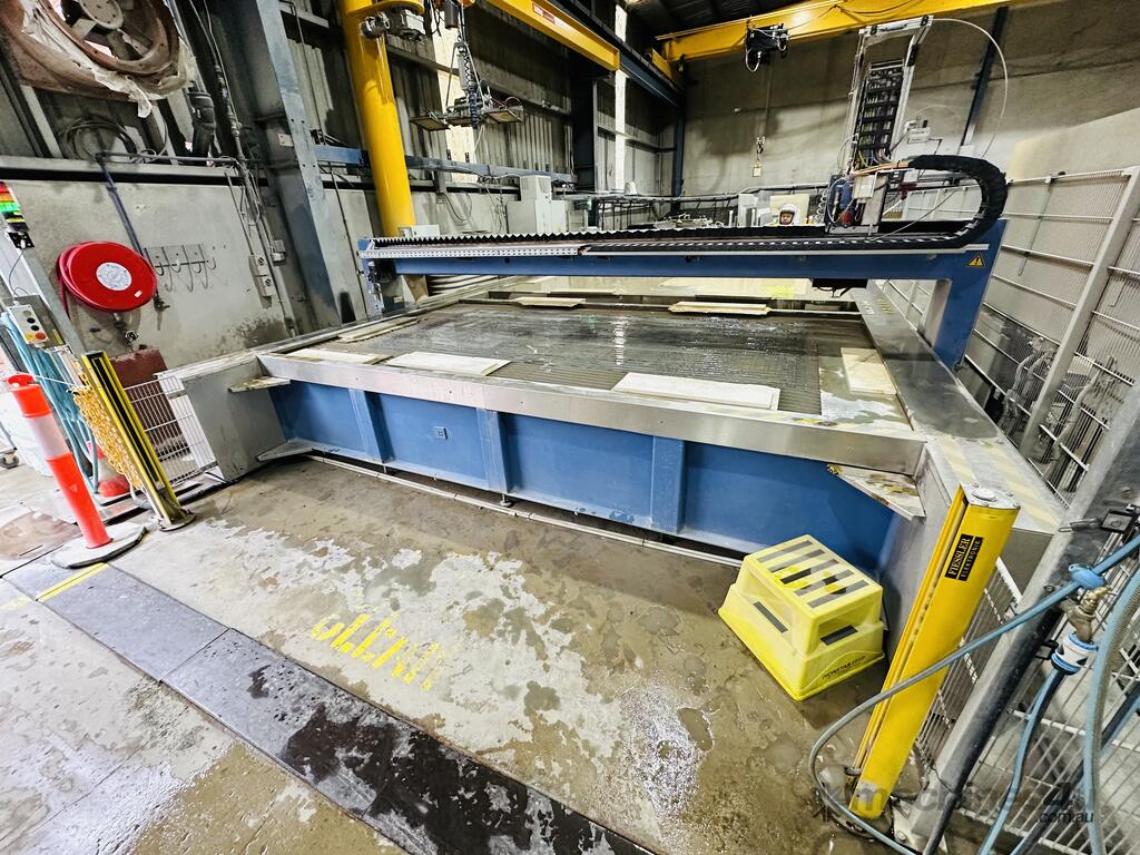 This water 5 axis water jet has the ability to cut straight and on various angles. Jet is equipped with 2 water beds to optimise cutting for production. While cutting on one table the other can be off loaded and loaded again for it's next job.