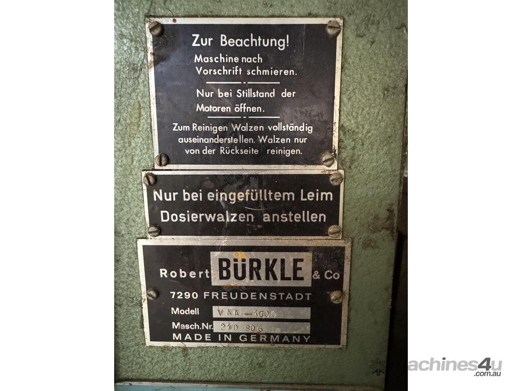 Including Burkle Veneer Glue Table (Roller) Model VAA-1600 Machine No. 210 806