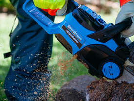 Featuring a powerful brushless motor. High power and fast cutting with a 14 (35 cm) chain and bar. Powered by a Samsung cell Lithium Ion battery for long runtime, constant no-fade power, it runs cleaner, quieter and is free from the hassles of petrol or cords. Pull the trigger and you have an instant start, long run time and able to hold charge in storage for months. Instant Start - No pull cords. No warm up. No petrol-oil mixing. No emissions.